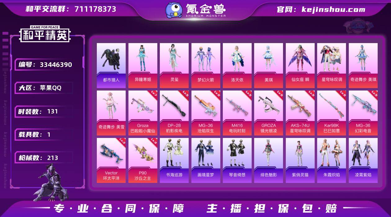 YZJ16426-可二次 苹果Q-【红装身法素材女号 艾丽娅全套 特权卡至27年 满级魔仙狗砸 女王艾丽娅 新火箭少女 都市 美琪美雪 洛天依 灵玺 咏叹调 寒姬 风铃 银尘 蓝螳螂 猎影月神 密露汐语 彩虹兔 云朵鹅 雪绒豹 满级双人飞行器[暮色之舞]】1红装1稀有1载具9粉装13特效枪7热门131套装213枪皮 69028热力值 6印记 历史超级王牌10星 【1红装】 暮色玫影-艾丽娅 (2级) 【1稀有】 都市猎人 【1载具】 暮色幽蹄 【9粉装】 梦幻火箭 美琪 奇迹舞步美雪 奇迹舞步美琪 仙女座瞬 洛天依 灵玺 异瞳寒姬 星穹咏叹调 【13特效枪】 AKM-暮色玫影 (3级) M416-电玩时刻 (5级) P90-沙丘之主 (3级) AKS-74U-星穹咏叹调 (5级) Kar98K-巳巳如意 (5级) MG-36-幻彩电音 (5级) MG-36-沧焰双生 (5级) DP-28-豹影疾电 (5级) GROZA-镜光银凌 (5级) GROZA-巴啦啦小魔仙 (7级) Mk14-福马献瑞 (5级) AA12-G-萌骑幻想 (2级) Vector-环太平洋 (3级) 【7热门】 Mark.06 龟仙人 鹰眼刺客 漫步者 军刀雅典娜 英勇保护者 弄潮海豚 【1头盔】 梦幻火箭头盔 【1背包】 梦幻火箭背包 营地ID:930396497