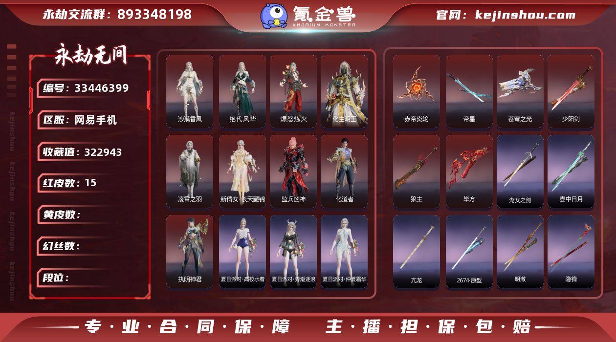 YJJ2306/5.9换绑/等级381/s20三人陨星4/15红509金收藏值322943/15红色神品:/化生明王/长天藏锦/熛怒炼火/凌霄之羽/绝代风华/沙漠香风/监兵凶神/化道者/执明神君/少阳剑/帝星/狼主/赤帝炎轮/苍穹之光/毕方/【技能奥义】/D.Va小兔徽章/金人俑/珥冰/神君印/初代机/凯蒂猫魔杖/荆魂 宁红夜:/夜华朝/自知/相柳/碧水青天/九阴圣女/簪缨发/双马尾女 沈妙:/腓腓/涂鸦少女/悠竹萌客/绮云衫/云溪仙子/绝伦袍/烂漫发/娇憨发/韶光发/NOIR发型/双马尾女 天海:/化生明王/少林/白熊/觉明尊者/法海/悟净/八宝龙王/双马尾男 殷紫萍:/长天藏锦/风雨谐/萍之缘/瑶光沐月/兰庭月/双马尾女 特木尔:/红蓝狂想/唐三/致命玩笑/友情岁月/街头梦语/多闻天王/路奇迷踪/龙虎斗/海神发/双马尾男 季沧海:/熛怒炼火/鹧鸪天/不良人李星云/巨阙/游四海/江湖行/江海沧澜/江海发/含锋发/白狼发/双马尾男 胡桃:/高校水着/晨风/御宅罗梦/春桃笑/贵胄少女/月丹发/双马尾女 妖刀姬:/青枝瓷/热海白珊 崔三娘:/湘夫人/暗沼摩罗/汐泪/阿娜希塔/赤雾烟霞/文鳐/怒浪/无拘/伏波龙女/弄潮逐浪/沸海发/冷傲发/双马尾女 岳山:/周平/破荆者/戍关将/弘毅袍/撼山岳/过江龙/双马尾男 无尘:/凌霄之羽/司天命/黄庭道/申公豹/羽客发/双...