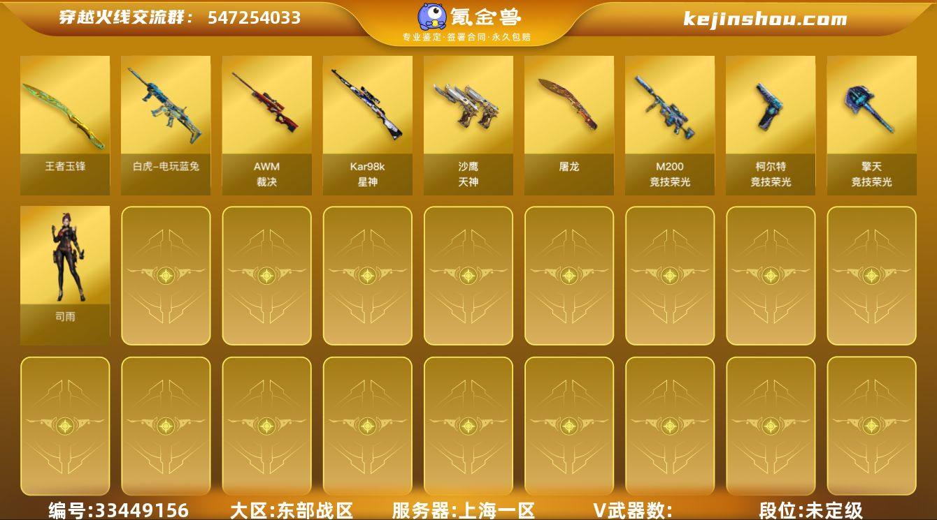 XD1088/东部/上海一区/可排位/【枪王1】/【Lv.86 少将5】/24V/M200竞技荣光套/星神/星神音效卡/白虎电玩蓝兔/朱雀电竞之星/柯尔特竞技荣光/三套竞技荣光雷/【枪皮】/【无幻神】/幻神电竞之星/裁决运输船/炽芒蝶刃荣耀世冠白鲨/【角色】/星际战将/战地猎狐/【道具】/各种戒指/永久AC/永久雷包/细节看图/【此账号封过十年已解】