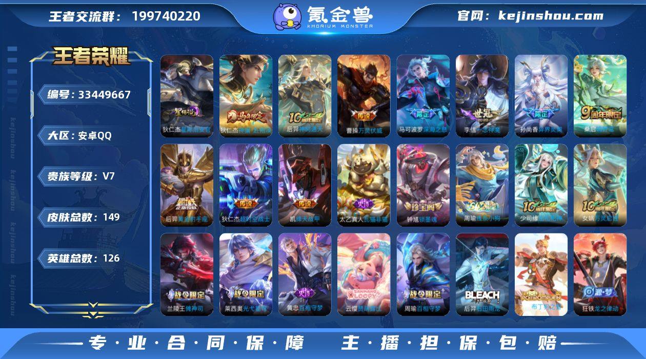 王者20860,,228夺宝,1113星币,安卓Q-V7-至尊星耀V段位-125英雄-149皮肤-10传说-42史诗 【英雄全皮】:孙权全皮,空空儿全皮 【传说皮肤】:狄仁杰神骥赴朔漠,后羿神树通天,曹操万灵伏威,桑启鸣野蒿,马可波罗深海之息,孙尚香异界灵契,铠绛天战甲,李信一念神魔,后羿黄金射手座,狄仁杰超时空战士 【限定皮肤】:蔡文姬夏日便利店,虞姬夏日便利店,姜子牙天穹之誓,狄仁杰阴阳师,赵云皇家上将,孙尚香异界灵契,阿轲迷踪丽影,元歌无心,马可波罗深海之息,狄仁杰魔术师,项羽海滩派对,李元芳蔬乡物语 【赛季限定】:姜子牙天穹之誓,太乙真人谧流熔炉,钟馗虚灵犬护,甄姬逆浪荇歌,亚瑟荣光之誓 【战令限定】:阿轲迷踪丽影,李元芳蔬乡物语,蔡文姬夏日便利店,虞姬夏日便利店,亚连破空之剑,孙悟空神迹守卫,百里守约百相守梦,老夫子百相守梦,刘禅鸭鸭历险记,沈梦溪鸭鸭历险记,周瑜百相守梦,孙策百相守梦,兰陵王傩神司,莱西奥光弋星穹,明世隐往忆晖光,周瑜线条小狗 【史诗皮肤】:钟馗锁墨魂,太乙真人瓦猫非猫,周瑜线条小狗,少司缘巫礼祀神,女娲万灵启世,兰陵王傩神司,莱西奥光弋星穹,黄忠百相守梦,云缨赞萌露比,周瑜百相守梦,后羿石田雨...