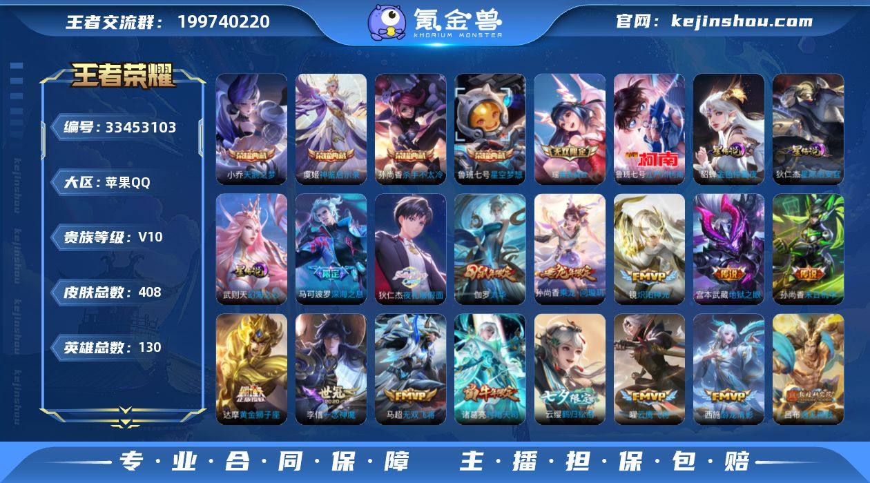 ky V10 可认证 苹果(q)区 (连体和平)金标鲁班七号 金标李元芳 408皮 5典藏 1无双 1珍品传说 55传说 104限定 13王者印记 3星 亮点推荐:【神鉴启示录 真我赫兹(瑶) 江户川柯南 启明星使 乘龙·问璇玑】道具内容:17按键 9亲密玫瑰 6浓情玫瑰