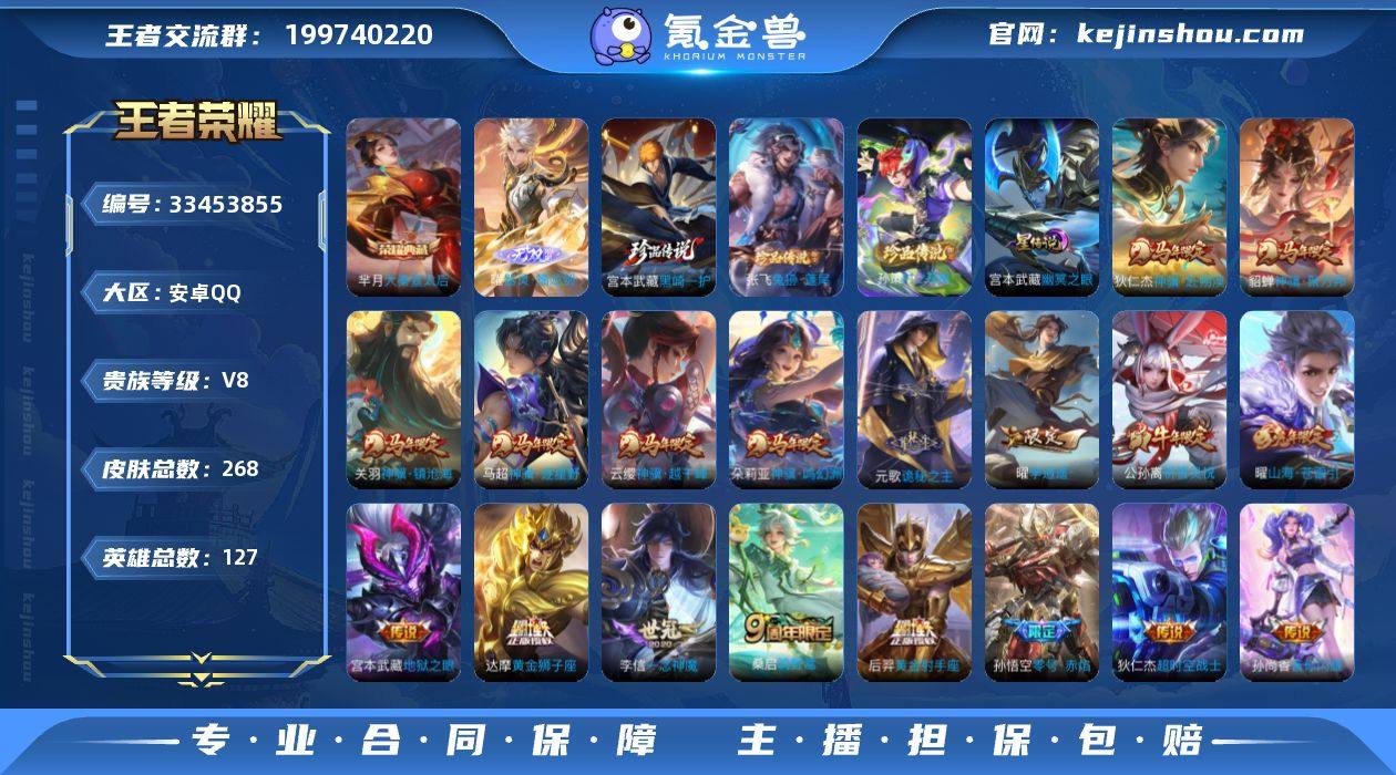 S-VJ4459 安卓QQ V8 268皮 1典藏1无双3珍品传2星元【满马年限定】 105限定20传说 15按键 巅峰1301 全能选手 2064星币 124幸运值 586英雄碎片 154皮肤碎片 2荣耀印记 营地号:433122782【珍品传说】孙策时之奇旅,兔狲·蓬尾,黑崎一护, 【无 双】器灵·螭龙剑, 【荣耀典藏】大秦宣太后, 【星元皮肤】幽冥之眼,时之思念, 【热门限定】神骥·镇沧海,神骥·鸣幻洲,神骥·赴朔漠,神骥·越千峰,神骥·逐星野,神骥·聚万邦,器灵·浮梦炉,至尊宝,朱雀志,李逍遥,冰锋战神,零号·赤焰,祈雪灵祝,白晶晶,蜜橘之夏,冰霜恋舞曲,暗影游猎,山海·苍雷引,启明星使,万灵启世,涂山容容, 【限定传说】猫狗日记男,一念神魔,蓝屏警告,地狱之眼,修罗,龙骑士,梁祝,未来纪元,神迹守卫,绛天战甲,黄金狮子座,黄金射手座,黄金分割率,超时空战士,音你闪耀,魅语,千年之狐,末日机甲男,原初探秘者,暗隐猎兽者,特工魅影,曙光守护者,白龙吟,圣诞恋歌,逐浪之夏,心灵战警,紫霞仙子,功夫厨神,心灵骇客,狮舞东方,幽灵船长,乘风破浪,星夜王子,天才门将,街头霸王,箭羽风息,暗渊魔法,月团寄思,星空之诺,鬼剑武藏,朔望之晖,赤莲之焰,银河之约,云间偶戏,死神来了,狂想玩偶喵,单词大作战,花好人间,饕餮,烛龙,重明,御狮,御霄,御旌,御銮,...