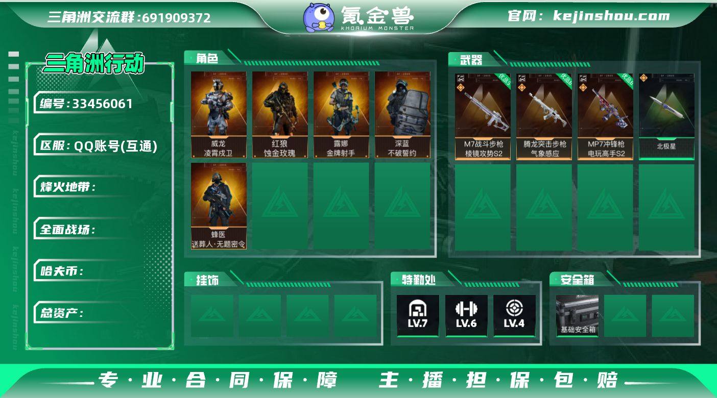 三角洲典藏皮肤北极星号:【刀皮:北极星】【棱镜M7-优品S】【冰腾龙-优品B】【电玩MP7-优品B】【干员皮肤:红狼-蚀金玫瑰/威龙-凌霄戍卫/露娜-金牌射手/盾构-不破誓约/蜂医-无题密令】【仓库炫彩鸟蛋】【总资产30M/现币9W】【烽火60级/仓库7/体力6/负重4】