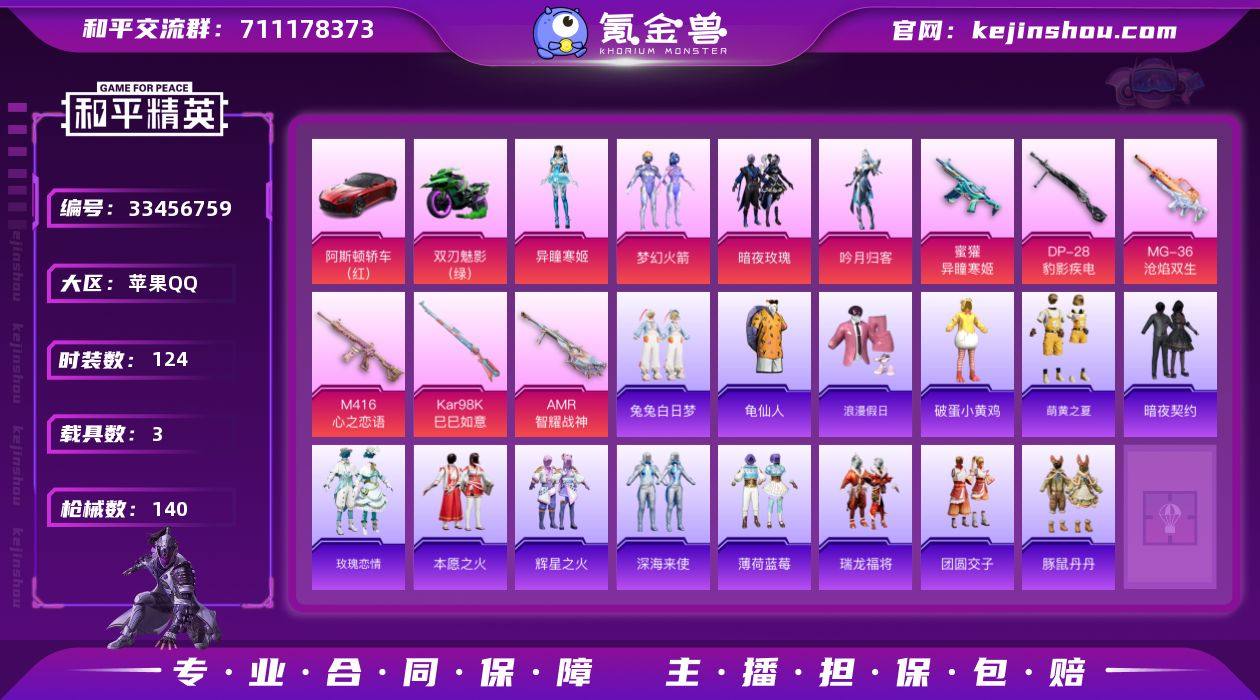 【957774】M1045234【身法号3载具4粉装6特效 梦幻火箭 星河浪客 7级心之恋语 1180军需币】苹果Q-3载具4粉装6特效枪12热门124套装140枪皮 50358热力值 5印记 历史传奇王牌17星 【3载具】 阿斯顿马丁S红色 双刃魅影绿色 空客蔚蓝之翼僚机 【4粉装】 梦幻火箭 异瞳寒姬 暗夜玫瑰 吟月归客 【6特效枪】 M416-心之恋语 (7级) Kar98K-巳巳如意 (4级) MG-36-沧焰双生 (5级) DP-28-豹影疾电 (5级) 蜜獾-异瞳寒姬 (1级) AMR-智耀战神 (7级) 【12热门】 龟仙人 浪漫假日 兔兔白日梦 暗夜契约 团圆交子 瑞龙福将 星河浪客 豚鼠丹丹 薄荷蓝莓 破蛋小黄鸡 M762-瑞龙福将 M762-风花雪月 【1飞行器】 梦幻火箭飞行器 【2背包】 心之恋语背包 花间之火背包 梦幻火箭 暗夜玫瑰 吟月归客 梦幻火箭飞行器 炫彩糖果飞行器 空客H135-蔚蓝之翼 角色-异瞳寒姬 阿斯顿·马丁DBS(红) 双人摩托-双刃魅影(绿) M416-心之恋语 蜜獾-异瞳寒姬 Kar98K-巳巳如意 AMR-智耀战神 DP-28-豹影疾电 MG-36-沧焰双生 特训学院 猎鹰 青年教官 橘黑制服 红色运动 黄色运动 蓝色运动 黄色伏地魔 白色伏地魔 黑色伏地魔 骑行爱好者 竞技名士 酒红色名流 湖蓝色名流 黄色名流 长空猛禽 旭日情侣 冷焰舞者 战地菁英 浪漫假日...