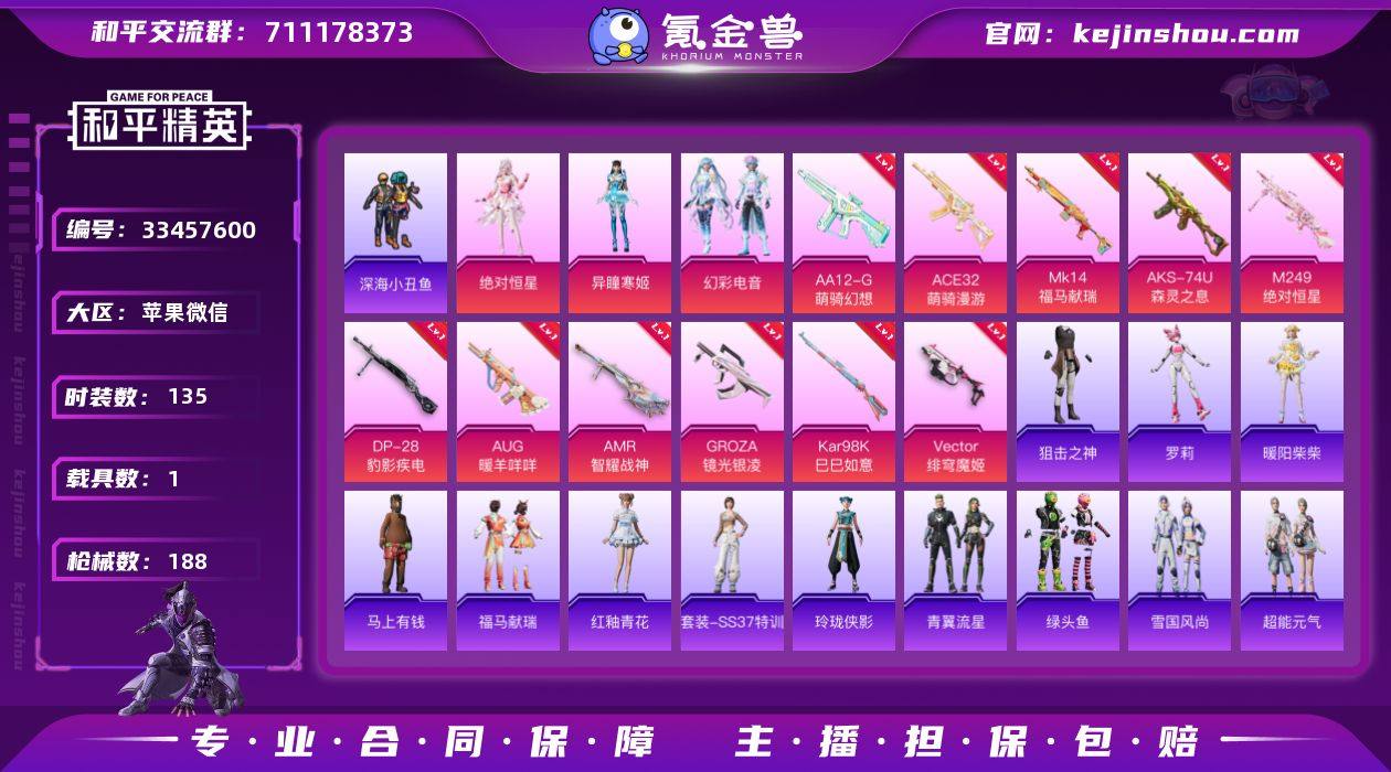 可二次实名【猫包11特效枪3粉装1载具 V社交 游戏正常】 苹果V区-50045热力值-135套装-188枪皮 【1载具】 兰博轿车灰色【1稀有】 百万伏待背包(猫包)【3粉装】 绝对恒星 角色-异瞳寒姬 幻彩电音【11特效枪】 AKS-74U-森灵之息(4级) Mk14-福马献瑞(5级) AA12-G-萌骑幻想(2级) ACE32-萌骑漫游(2级) M249-绝对恒星(5级) AMR-智耀战神(5级) Kar98K-巳巳如意(5级) Vector-绯穹魔姬(5级) AUG-暖羊咩咩(5级) GROZA-镜光银凌(5级) DP-28-豹影疾电(5级)【219热门】 深海小丑鱼 浪漫天命 小丑鱼 迅捷狂鲨 极速红龙 豚鼠丹丹 白色伏地魔 SS27特训 SCAR-L-玉兔迎春 UMP45-蓝色火焰 M249-彩虹符号 呆萌铁蟹 M416-蓝色火焰 破蛋小黄鸡 长空猛禽 特训学院 青年教官 魅力单车 凛冬战士 猎鹰 蓝色运动 橘黑制服 竞技达人朋克 黄色运动 漫步者 黄色伏地魔 红色运动 黑色伏地魔 海岛探路者 S1897-糯团青竹 AA12-G-雨过天青 沙漠之鹰-雨过天青 Mini14-绯穹魔姬 平底锅-画境星梦 超感刻度 海琴烟 P90-紫矿核心 GROZA-紫矿核心 玲珑侠影 M16A4-雨过天青 AC-VAL-玩趣呆呆 顶瓜瓜 SPAS-12-福马献瑞 M249-无面战甲 Vector-荒原烈焰 雨过天青 Mk47-虚空骇客 冰河战士 蜜獾-冰澜龙吟 MG-36-薄荷星砂 GROZ...