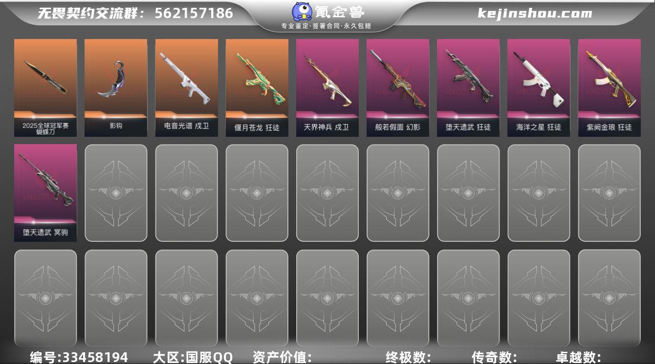 【PTWW3947】LV等级131/皮肤总价值29700/段位白银/总皮肤数量42/刀皮数量5/枪皮数量37/套装数量1/具体详情请看图/2025全球冠军赛套装/幻棱/炼狱/维斯/暮蝶/钛狐/壹决/铁臂/捷风/雷兹/幽影/不死鸟/贤者/猎枭/蝰蛇/零/芮娜/奇乐/尚勃勒/霓虹/夜露/星礈/K/O/盖可/黑梦/钢锁/2025全球冠军赛 蝴蝶刀/影钩/近战武器-澄湖潋滟/近战武器-全息匕首/近战武器-诡秘蛇影军刀/2025全球冠军赛-狂徒/狂徒-偃月苍龙/狂徒-ORA x 颗秒/狂徒-堕天遗武/狂徒-海洋之星/狂徒-紫阙金琅/狂徒-诡秘蛇影/幻影-般若假面/异鳞魔蛇 幻影/神圣领域 幻影/幻影-末日之翼/戍卫-电音光谱/戍卫-天界神兵/戍卫-折光棱晶/神圣领域 獠犬/冥驹-堕天遗武/飞将-末日之翼/莽侠-诡秘蛇影/月球哨兵 莽侠/神圣领域 战神/奥丁-末日之翼/判官-诡秘蛇影/月球哨兵 雄鹿/骇灵-星云暗涌/星云暗涌 蜂刺/蜂刺-折光棱晶/标配-折光棱晶/奇点-正义/正义-月球哨兵/鬼魅-诡秘蛇影/狂怒-神圣领域/狂怒-蒙太奇/短炮-末日之翼/无畏契约GO!第一卷:芮娜 卡面/无畏契约GO!第一卷:零 卡面/无畏契约GO!第一卷:贤者 卡面/铁臂vs雷兹 卡面/代号红色 卡面/新兵报到 卡面/V契约 卡面/无畏契约 卡面/买装还是存钱 喷漆/胜利属于无畏契约 喷漆/GLH...