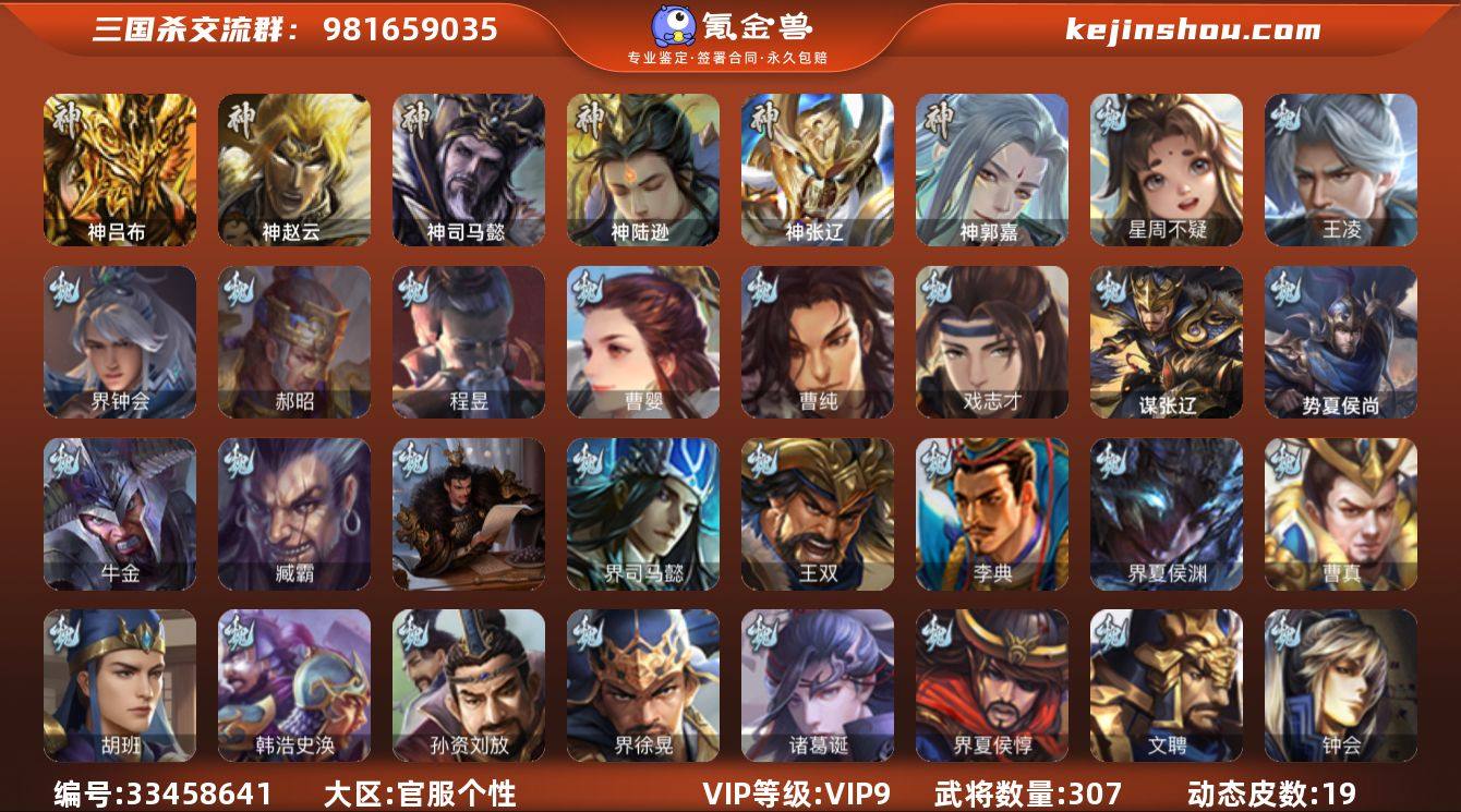 【JYSGS166】官阶:骠骑将军 VIP等级:VIP9级 史诗武将数:28 动态皮肤数:19 武将总数:307 史诗宝珠数:3 元宝数:6181 将魂数:174