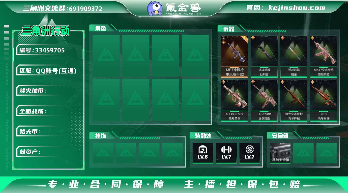 YQ-总资产156.9m/哈夫币9.019m/部门33433/点券14467 【极品S0.1磨损纯银全彩RGB呼吸灯MP7电玩高手 暗星/悠然茶歇/荼蘼/缄花/锦绣套 除潜水2级 仓库8级 全满 2S财神到 3S财神到 点券14467!! 】 等级 60 烽火段位 无段位 橙:MP7电玩高手,UZI悠然茶歇,AUG悠然茶歇,MK47悠然茶歇,腾龙马年祥瑞,G18马年祥瑞,PKM荼蘼,SR荼蘼,SCAR荼蘼,M14缄花,SR缄花,.357缄花,AKM锦绣,K437锦绣,SMG锦绣,M14蛮荒,MK47暗星,SR暗星,K416行动记录, 刀:近战暗星,近战处刑者 限时道具/段位以实际验号为准。如账号因没有维护,赛季更新等不可抗因素发生变化,不属于账号质量问题差""