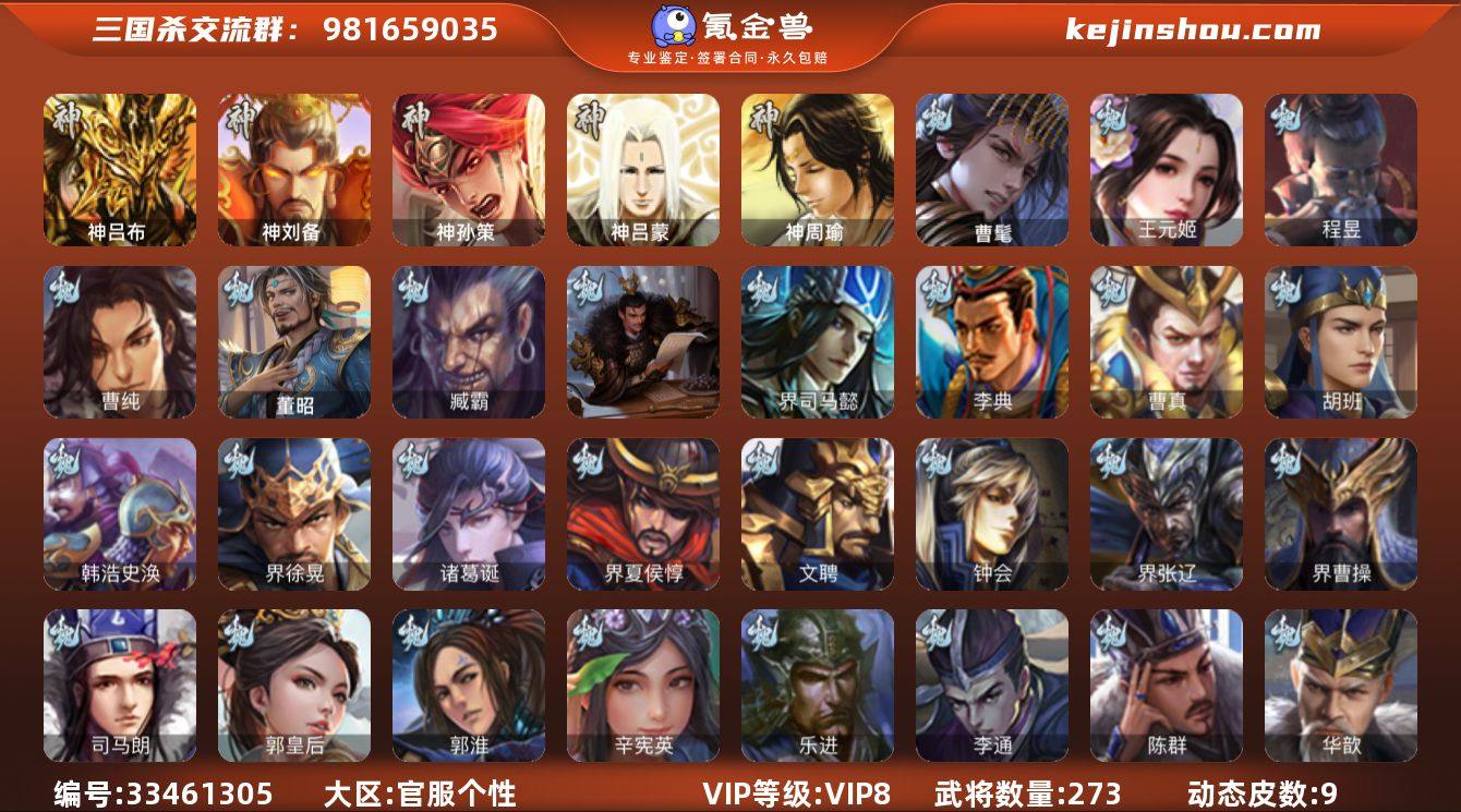神吕布,神刘备,神孙策,曹髦,王元姬,曹纯,程昱,关索,谋诸葛亮,谋赵云,谯周,花鬘,董允,留赞,左慈,张让,界李儒,卑弥呼,兀突骨,神吕蒙,神周瑜,SP关羽,SP蔡文姬,乐进,曹昂,诸葛诞,朱灵,文聘,SP姜维,钟会,曹冲,郭淮,满宠,界王异,界曹操,界司马懿,界夏侯惇,界张辽,界许褚,界郭嘉,李典,曹真,韩浩史涣,陈群,曹叡,曹休,钟繇,司马朗,王基,李通,郭皇后,辛宪英,吕虔,鲁芝,界徐晃,界曹植,界满宠,界郭淮,卞夫人,华歆,谋徐晃,牵招,胡班,臧霸,董昭,SP孙尚香,关银屏,夏侯霸,马良,关兴张苞,廖化,界马岱,关平,简雍,刘封,界法正,界关兴张苞,界刘备,界关羽,界张飞,界赵云,SP徐庶,吴懿,周仓,张松,刘谌,夏侯氏,糜竺,马忠,黄皓,界黄月英,界诸葛亮,赵统赵广,界伊籍,界卧龙诸葛,界庞统,张翼,杨仪,费祎,王甫赵累,刘巴,彭羕,界张嶷,谋姜维,谋张飞,吴班,诸葛果,蒋琬费祎,甘夫人,势陈祗,凌操,诸葛恪,诸葛瑾,孙鲁育,程普,韩当,潘璋马忠,虞翻,朱然,界甘宁,界吕蒙,界黄盖,界周瑜,界大乔,界陆逊,孙鲁班,朱桓,顾...