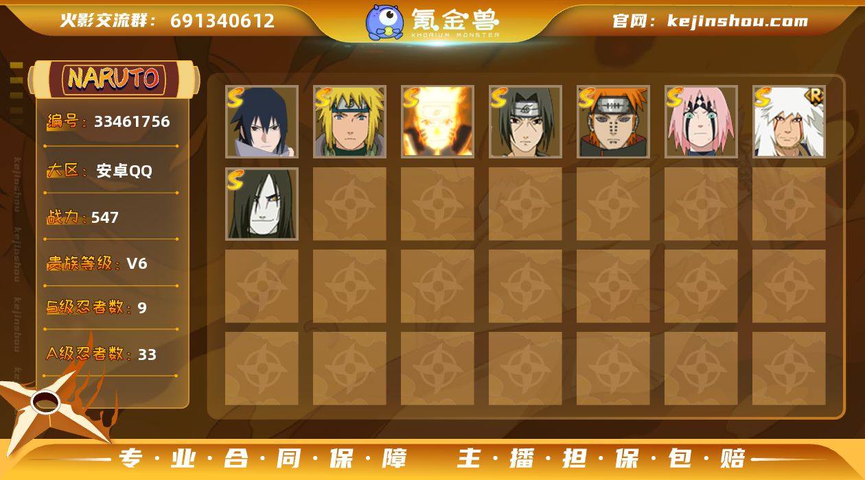 [18747058]V6 9S忍 33A忍 15通灵 547W战力 可二次 可修改实名 【S级忍者】宇智波佐助「永恒万花筒」,春野樱 「忍界大战」,漩涡鸣人 「九喇嘛连结」,自来也 「舞之豪杰」,漩涡鸣人·宇智波佐助,宇智波鼬 「须佐能乎」,佩恩「天道」,波风水门,大蛇丸