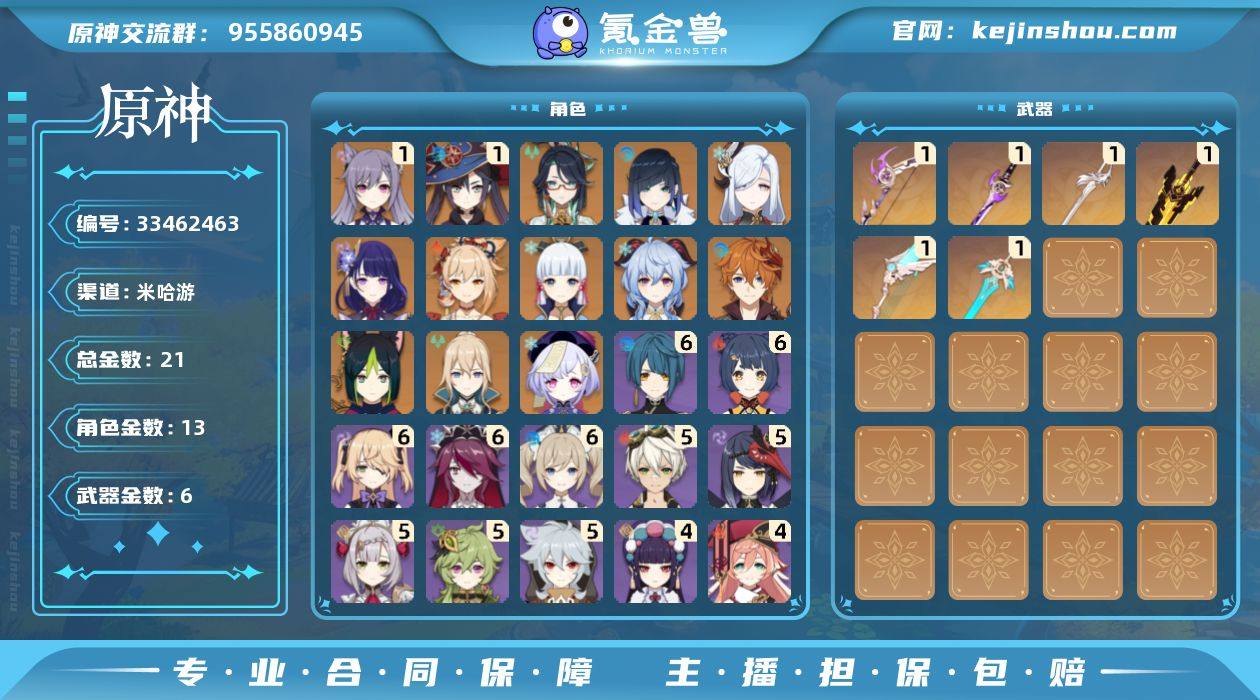多个毕业 up 角色 飞雷雾切等五星武器 上手即玩