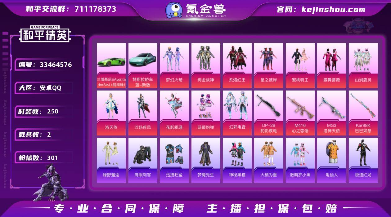 【957851】M1046945【身法号地铁满天赋2载具-13粉装-6特效枪 洛天依 梦幻火箭 幻彩电音 胖达圆圆,暗影哥特,浪漫天命,激萌罗小黑 M416-心之恋语[7级]MG3-洛神天依[7级]】安卓手Q-2载具-13粉装-6特效枪-250套装-301枪皮-14王牌印记-不朽星钻Ⅰ-99413热力值【2载具】兰博基尼Aventador SVJ(翡翠绿),特斯拉Roadster(水滴蓝)【13粉装】蝶舞蔷薇,角色-洛天依,绿野邂逅,花影阑珊,幻彩电音,蓝莓炮弹,蜜桃特工,沙场疾风,炙焰红王,星之彼岸,山涧鹿灵,梦幻火箭,绚金战神【6特效枪】DP-28-豹影疾电[5级],Kar98K-巳巳如意[5级],M416-心之恋语[7级],AA12-G-萌骑幻想[5级],ACE32-萌骑漫游[5级],MG3-洛神天依[7级]【8稀有】胖达圆圆,暗影哥特,浪漫天命,激萌罗小黑,M762-奇异狩猎者,M24-奇异狩猎者,汤姆逊-奇异狩猎者,S686-奇异狩猎者【11飞行器】粉色滑翔尾迹,破刃行动尾迹,镜域双华-灵镜之阶,异域银装飞行器,红色滑翔尾迹,鸡智如我飞行器,炫彩糖果飞行器,马卡龙飞行器,顶峰精英尾迹,空岛之星尾迹,幽焰列车飞行器【3头盔】水曜玄武头盔,夏日绵绵冰头盔,梦幻火箭头盔【6背包】古堡领主背包,金曜白虎背包,梦幻火箭背包,神秘黑猫背包,深海曼妙背包,夏日绵绵冰背包【524其它衣服和枪皮】雨林探路者,...