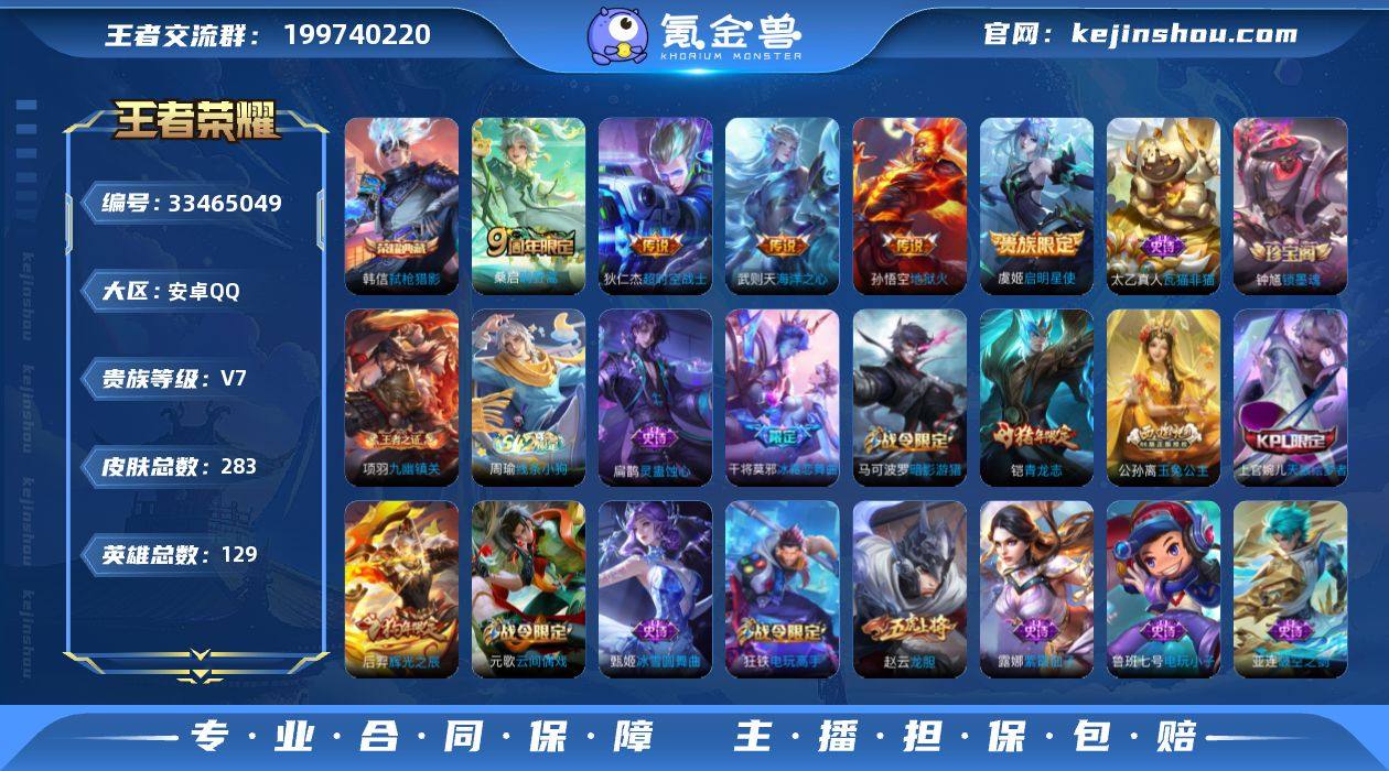 编号ZPWZ-006 可二次 v8 283皮肤 1典藏 5传说 弑枪猎影 启明星使 锁墨魂 海洋之心 九幽镇关 画中游 冰霜恋舞曲 鸣野蒿 鹤鸣心笺 狄仁杰-超时空战士 龙胆 真爱魔法 辉光之辰 无限星赏官 地狱火 青龙志 玉兔公主 天狼绘梦者 幽灵船长 前尘 吕布-末日机甲