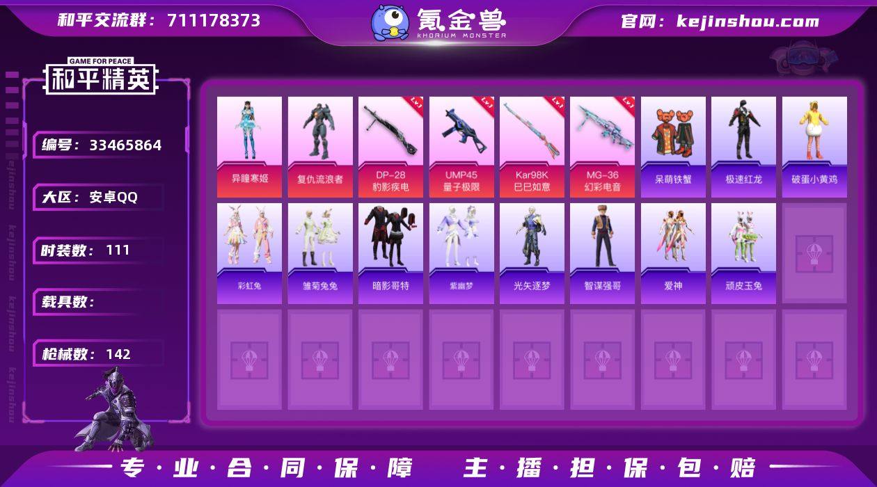 DYH18158【2粉装 特效4 暗影哥特】安卓手Q-2粉装-5特效枪-111套装-142枪皮-5王牌印记-荣耀皇冠Ⅴ-35736热力值【2粉装】角色-复仇流浪者,角色-异瞳寒姬【5特效枪】Mk14-福马献瑞[5级],MG-36-幻彩电音[5级],Kar98K-巳巳如意[5级],UMP45-量子极限[5级],DP-28-豹影疾电[5级]【1稀有】暗影哥特【6飞行器】鸡智如我飞行器,异域银装飞行器,狂鲨锋刃飞行器,破刃行动尾迹,炫彩糖果飞行器,粉色滑翔尾迹