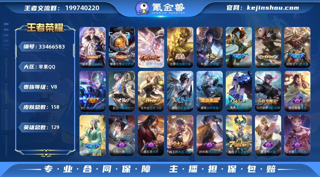 HW9026苹果Q-Vundefined-至尊星耀V-129英雄-158皮肤-2典藏-0无双-0珍品传说-11传说-39史诗 【稀有英雄】 敖隐 嬴政 不知火舞 橘右京 夏洛特 娜可露露 韩信 艾琳 赵云 【典藏皮肤】 星空梦想 星域神启 【传说皮肤】 启明星使 云霓雀翎 零号·赤焰 云鹰飞将 补天 黄金狮子座 一念神魔 淬星耀世 超时空战士 冠军飞将 愿照·岁时盈 【限定皮肤】 暗影游猎 补天 【史诗皮肤】 末日机甲 匿光决锋者 暗影游猎 苍穹之光 心灵战警 五谷丰年 寅虎·心曲 无限星赏官 摇滚巨星 修罗 魅力维加斯 偶像歌手 晚萤 鹰眼统帅 龙骑士 金属风暴 特工魅影 猫狗日记 逐浪之夏 魔术师 唤灵魅影 皇家上将 魅语 器灵·浮梦炉 白龙吟 永昼 茶境仙 蔷薇恋人 火炮绅士 寅虎·展翼 心灵骇客 箭羽风息 吟游魔法 绅士熊喵 星界特工 时之恋人 水果甜心 乘风破浪 暗隐猎兽者 【勇者皮肤】 时空谍影 烛龙 爱心护理 沙漠行僧 大漠名商 纽约教父 龙舞盛年 丁香结 功夫炙烤 沉稳之力 幻夜卜梦 海盐诗旅 朔风刀 醍醐杖 热血海滩 白色死神 黑桃队长 黄金武士 阴阳师 次元突破 古海寻踪 功夫老勺 鲨炮海盗猫 海滩派对 完美运算 红桃皇后 野性能量 守护之力 无双福将 潮玩探月行 天穹祈灯 疑决卦 化身博士 阿尔法...