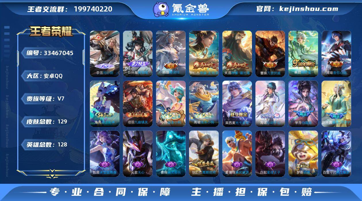 【957853】V7 2无双 6传说 128英雄 129皮肤 可二次 可修改实名 男号 【英雄全皮】敖隐全皮,孙权全皮,蚩奼全皮,海诺全皮,大禹全皮 【稀有英雄】敖隐(小龙人),大司命,韩信(韩跳跳),夏洛特(夏师傅),艾琳,橘右京(橘子),娜可露露(鸟人),不知火舞,赵云,金蝉(唐僧),戈娅 【无双皮】问心剑,离恨烟(公孙离无双) 【传说皮】神骥·镇沧海,神骥·赴朔漠,踏浪归,万灵伏威,音你心动-周瑜 【珍宝阁皮】女武神 【赛季/战令皮】古海寻踪(s33),海盐诗旅(s30),擒涛扼浪(s31),探海日志(s32),流音漫舞,顽趣-梦奇,剑破天穹(s35),天穹祈灯(s34),天穹之誓(s36),混沌棋(s18),醍醐杖(s20),原初探秘者(s21),万华元夜(s22),演武夺筹(s23),驱傩正仪(s24),千军破阵(s25),沙漠行僧(s26),金庭之子(s27),大漠名商(s28),云中旅人(s29) 【史诗皮】海之女神,星界特工,星界战将,器灵·浮梦炉,海诺心动手记,光弋星穹,线条小狗-周瑜,九幽镇关,线条小狗-小乔,特工魅影,蒙恬荣光圣徽,猫狗日记-大乔,水果甜心,绅士熊喵,星夜王子,暗隐猎兽者,幽灵船长,鬼剑武藏,地狱岩魂,乘风破浪,逐浪之夏,月团寄思,金属风暴,圣诞恋歌,鹰眼统帅,暗夜贵公子,魅力维加斯,黎明之约,雪上飞焰,无心 【限定皮】鸣野蒿,白晶晶 【普通皮】赤刃凌霄,...