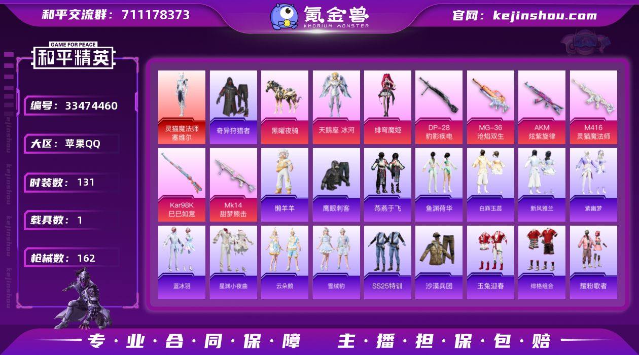 【957979】M1047538【1载具-1神装-2粉装-7特效枪 塞维尔[2级] 深海小丑鱼,奇异狩猎者M416-灵猫魔法师[3级]】苹果手Q-1载具-1神装-2粉装-7特效枪-131套装-162枪皮-4王牌印记-不朽星钻Ⅲ-53645热力值【1载具】黑曜夜骑【1神装】灵猫魔法师-塞维尔[2级]【2粉装】角色-绯穹魔姬,角色-天鹅座 冰河【7特效枪】ACE32-萌骑漫游[4级],Kar98K-巳巳如意[5级],AKM-炫紫旋律[4级],DP-28-豹影疾电[5级],MG-36-沧焰双生[5级],Mk14-甜梦熊击[5级],M416-灵猫魔法师[3级]【2稀有】深海小丑鱼,奇异狩猎者【7飞行器】勇闯险境飞行服,甜茶絮语飞行器,炫彩糖果飞行器,光之冒险尾迹,马上有福飞行器,粉色滑翔尾迹,灵猫魔法师飞行器【2背包】马卡龙背包,甜心宝贝背包【281其它衣服和枪皮】幻世战舞者,原初圣火,顶瓜瓜,云朵鹅,黄色名流,特种颜团子,牛气冲天,灼焰舞者,红釉青花,甜蜜熊情侣,瑞龙福将,新风雅兰,空投萌叽,SS25特训,凌霄紫焰,SS37特训,雪鹰学院,旭日情侣,青玉碎影,迅捷龙虾,大橘大利,SS36特训,热血青春,SS22特训,绯格组合,登山爱好者,潮流炫酷,娇憨猪猪,萌黄之夏,SS21特训,绮丽涂鸦,元气之梦,SS16特训,暗夜傀儡,缤纷果语,SS12特训,SS17特训,SS13特训,都市漫游者,团圆交子,蓝冰羽,雨过天青,竞技...