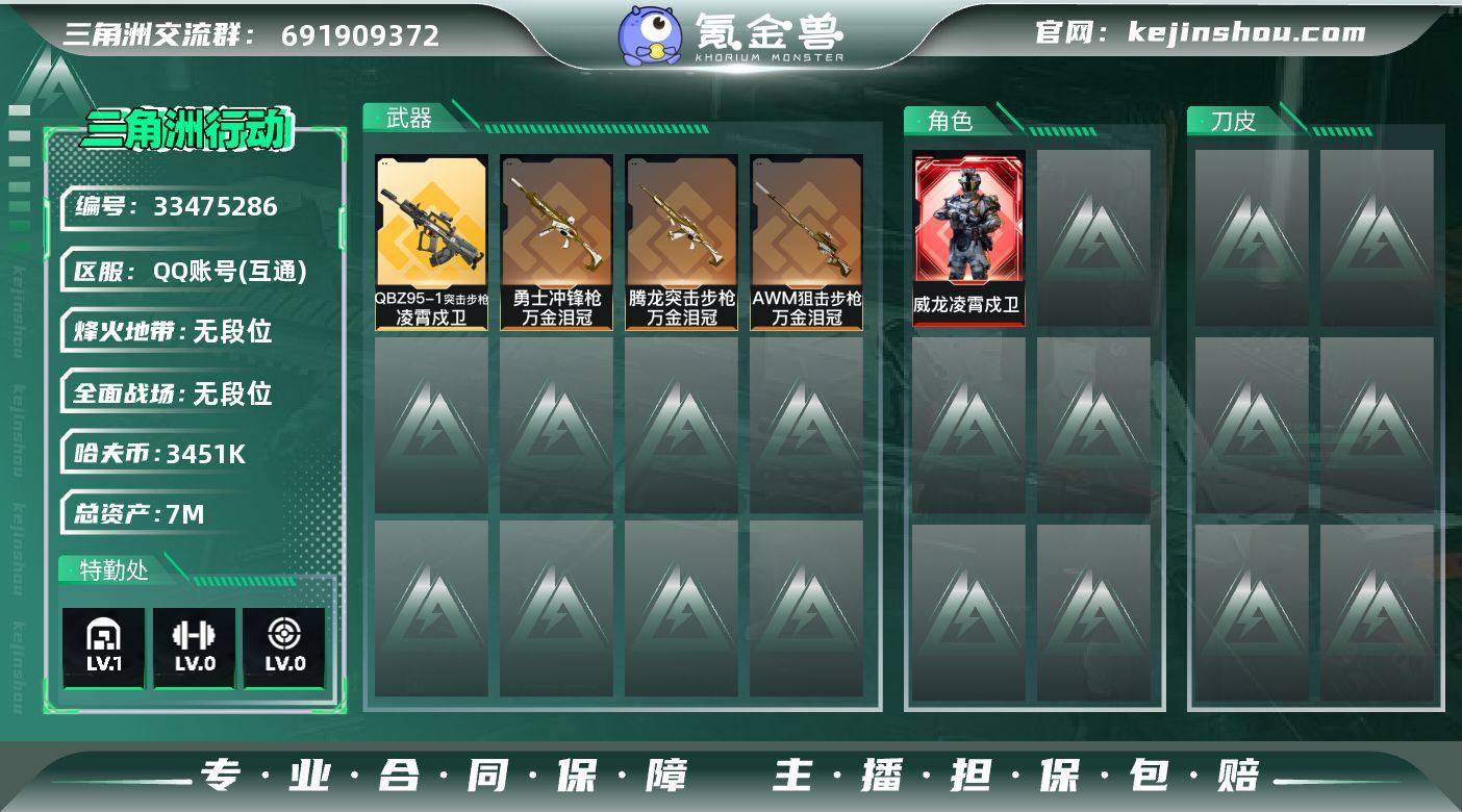 总资产7M/哈夫币345万/传说枪皮数4/战场等级1/行动等级2/安全箱等时效性道具以游戏内数据为准,详情请看图/威龙-凌霄戍卫/近战-黑鹰/QBZ95-1突击步枪-凌霄戍卫/腾龙突击步枪-万金泪冠/勇士冲锋枪-万金泪冠/AWM狙击步枪-万金泪冠/勇士冲锋枪-冰天雪地/QSZ92G-一帆风顺/M4A1突击步枪-海色/M7战斗步枪-红色涂装/SG552突击步枪-海浪/CAR-15突击步枪-狂欢/UZI冲锋枪-狂欢/SR-25射手步枪-黑巧甜心/挂饰-凌霄戍卫/挂饰-万金泪冠