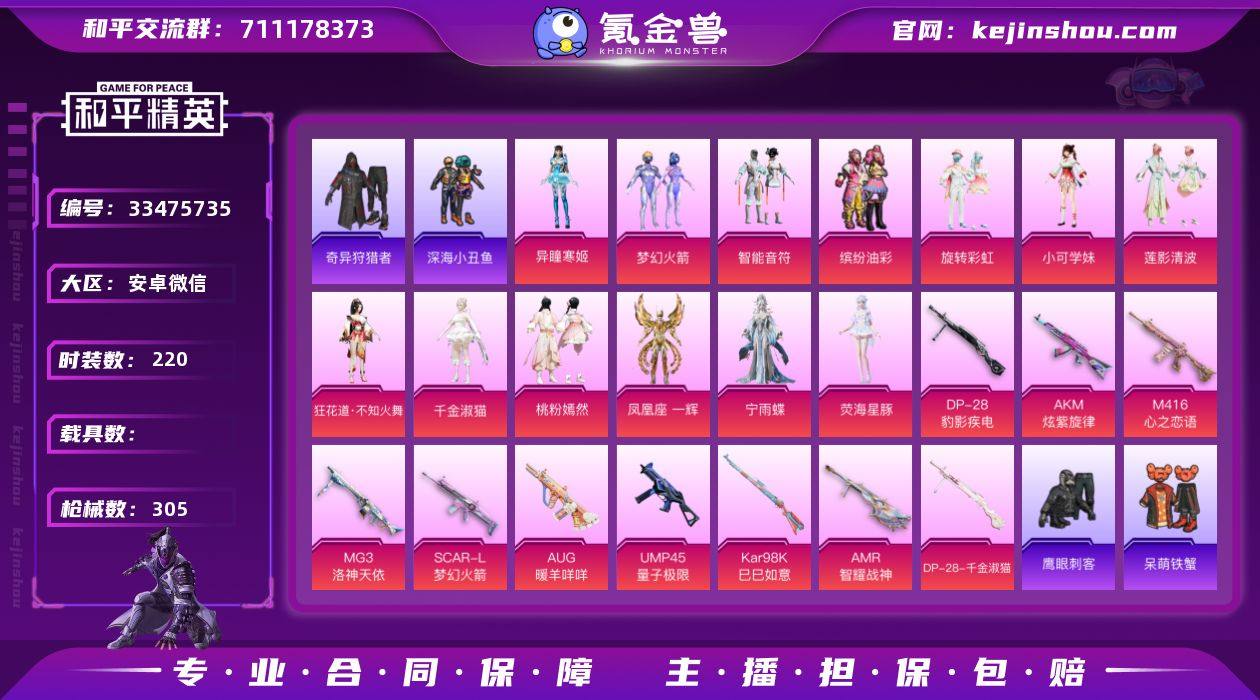 【958047】M1047685有二次【13粉装12特效枪 梦幻火箭 猪脸 都市猎人 蓝螳螂 金鞋子 深海小丑鱼 LGD追光队服 暗影哥特 梦幻火箭 (7级)心之恋语 (7级) AKM-炫紫旋律 (7级) 】 禁言4月18号解 安卓V-5稀有13粉装12特效枪18热门220套装305枪皮 99705热力值 17印记 历史传奇王牌18星 【5稀有】 奇异狩猎者 都市猎人 浪漫天命 派对舞王 派对舞王(金靴子) 【13粉装】 梦幻火箭 狂花道·不知火舞 宁雨蝶 凤凰座一辉 千金淑猫 荧海星豚 异瞳寒姬 桃粉嫣然 小可学妹 智能音符 缤纷油彩 莲影清波 旋转彩虹 【12特效枪】 SCAR-L-梦幻火箭 (7级) M416-心之恋语 (7级) AKM-炫紫旋律 (7级) Kar98K-巳巳如意 (5级) DP-28-千金淑猫 (1级) DP-28-豹影疾电 (5级) AUG-暖羊咩咩 (5级) UMP45-量子极限 (5级) AMR-智耀战神 (7级) MG3-洛神天依 (4级) Mk14-福马献瑞 (5级) ACE32-萌骑漫游 (2级) 【18热门】 Mark.06 小丑鱼 龟仙人 浪漫假日 呆萌铁蟹 万圣娃娃 鹰眼刺客 深海小丑鱼 LGD追光队服 暗影哥特 团圆交子 瑞龙福将 破蛋小黄鸡 M762-奇异狩猎者 M762-瑞龙福将 M24-奇异狩猎者 S686-奇异狩猎者 Mini14-林间仙鹿 【2头盔】 童趣迷兔头盔 梦幻火箭头盔 【3背包】 银河战甲背包 梦幻火箭背包 深海...