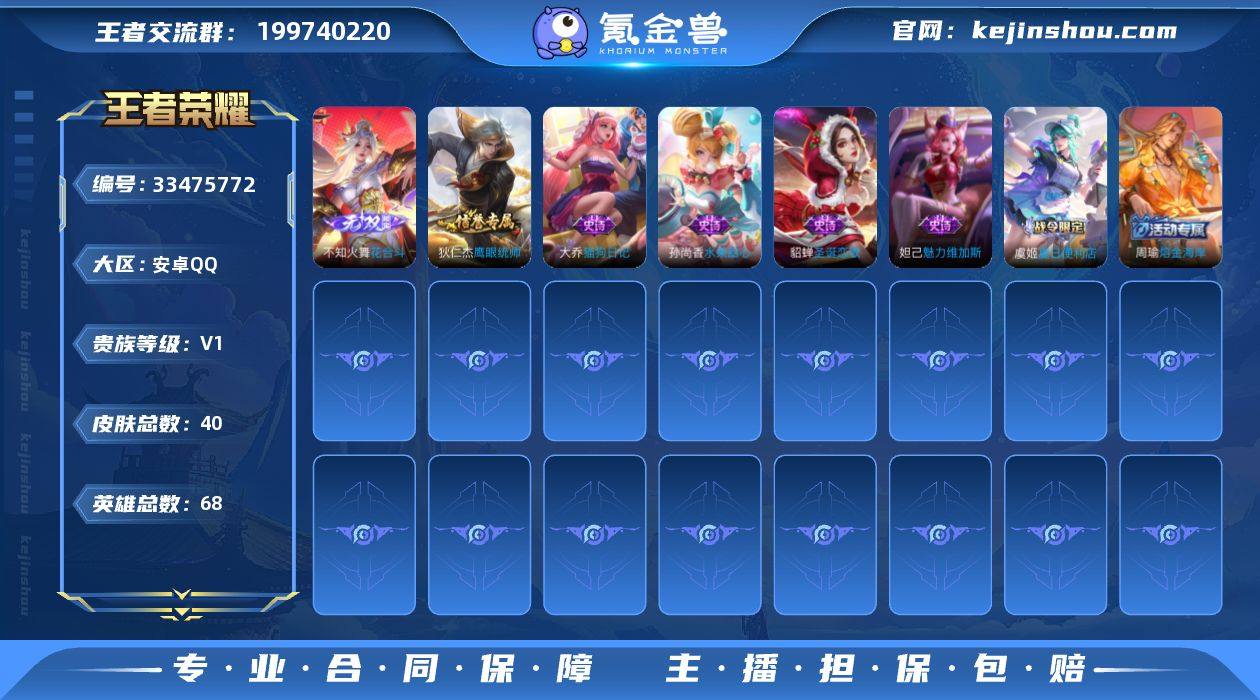 安卓Q-V0-尊贵铂金II段位-68英雄-40皮肤-1无双-3传说-10史诗