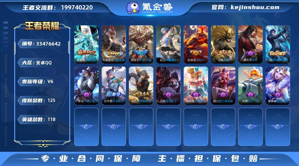V6 6传说 118英雄 125皮肤 可修改实名 男号