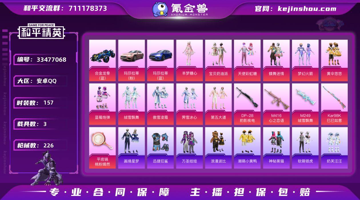 【958163】M1047050【身法号3载具-12粉装-5特效枪 梦幻火箭 虹云熊熊 第五大道 黄伞悠悠 天使彩虹糖 宝贝奶油派 胖达圆圆 心之恋语[7级]】安卓手Q-3载具-12粉装-5特效枪-157套装-226枪皮-5王牌印记-英勇黄金Ⅱ-78635热力值【3载具】玛莎拉蒂Ghibli(粉),合金龙骨(蓝),玛莎拉蒂Ghibli(蓝)【12粉装】绒雪飘舞,第五大道,宝贝奶油派,霁雪冰心,角色-羊梦糖心,傲雪凌霜,梦幻火箭,蝶舞迷情,黄伞悠悠,天使彩虹糖,角色-虹云熊熊,蓝莓炮弹【5特效枪】DP-28-豹影疾电[5级],Kar98K-巳巳如意[5级],M416-心之恋语[7级],平底锅-桃粉嫣然[3级],M249-绒雪飘舞[7级]【2稀有】胖达圆圆,S686-奇异狩猎者【3飞行器】绒雪飘舞飞行器,红色滑翔尾迹,相思残雪飞行器【5头盔】梦幻火箭头盔,甜蜜誓约头盔,花间之火头盔,甜心宝贝头盔,马卡龙头盔【3背包】甜心宝贝背包,甜蜜誓约背包,深海曼妙背包【364其它衣服和枪皮】黎明保卫者,巳巳如意,淡雅花蕊,异彩先驱,萌鸡速递,滨海假日,莱茵河畔,SS18特训,北国孤狼,角色-碧青流霞,茉莉之诺,SS20特训,镭射皇者,甜心亚梦,午间小调,白熊同盟,跃动心情,摇滚狂鲨,幻彩翩翩,萌黄之夏,柠萌假日,牛气冲天,热血青春,SS12特训,科技之星,飞行日记,治愈之星,智慧隐士,迅捷狂鲨,...