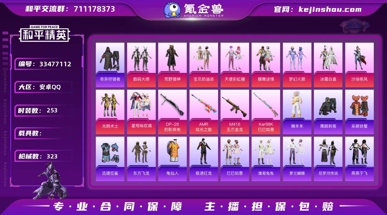 【958158】M1046937【20高印记11粉装-5特效枪梦幻火箭 忍者信条,浪漫天命,奇异狩猎者,暗影哥特,都市猎人 M416-五爪金龙[7级]】安卓手Q-11粉装-5特效枪-253套装-323枪皮-20王牌印记-荣耀皇冠Ⅰ-94588热力值【11粉装】冰霜白皇,梦幻火箭,沙场疾风,宝贝奶油派,星穹咏叹调,蝶舞迷情,角色-罪夜之冕,天使彩虹糖,光明术士,数码大师,荒野猎神【5特效枪】Mk14-福马献瑞[5级],Kar98K-巳巳如意[5级],M416-五爪金龙[7级],AMR-炫光之旅[7级],DP-28-豹影疾电[5级]【9稀有】忍者信条,浪漫天命,奇异狩猎者,暗影哥特,都市猎人,汤姆逊-奇异狩猎者,M24-奇异狩猎者,AKM-奇异狩猎者,M762-奇异狩猎者【7飞行器】鸡智如我飞行器,红色滑翔尾迹,异域银装飞行器,马上有福飞行器,粉色滑翔尾迹,狂鲨锋刃飞行器,顶峰精英尾迹【3头盔】幻影战神头盔,百万伏特头盔,甜心宝贝头盔【3背包】百万伏特背包,幻影战神背包,甜心宝贝背包【551其它衣服和枪皮】Alan Walker,酷潮明星,街头风暴,薄荷星砂,黄色伏地魔,白熊同盟,绮丽涂鸦,SS16特训,炫蓝之夏,异彩先驱,SS30特训,轻风白浪,特种颜团子,冰冻风暴,SS20特训,竞技勇士朋克,角色-海琴烟,热血青春,顽皮玉兔,纯真浪花,竞技角斗士,龙魂突击队,潮流游乐家,灼焰舞者,黄色名...