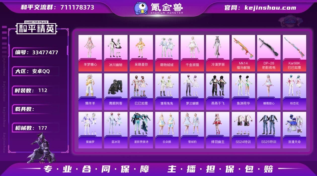 【958250】M1047619【可二次 身法号6粉装-3特效枪 深海小丑鱼,都市猎人,派对舞王,浪漫天命】安卓手Q-6粉装-3特效枪-112套装-177枪皮-4王牌印记-不朽星钻Ⅴ-50315热力值【6粉装】角色-羊梦糖心,冰川幽秘,萌物绒绒,角色-冷漠罗丽,角色-呆萌星弥,角色-千金淑猫【3特效枪】Kar98K-巳巳如意[5级],Mk14-福马献瑞[5级],DP-28-豹影疾电[5级]【4稀有】深海小丑鱼,都市猎人,派对舞王,浪漫天命【9飞行器】圣域金龙飞行器,炫彩糖果飞行器,鸡智如我飞行器,顶峰精英尾迹,狂鲨锋刃飞行器,异域银装飞行器,星夜魔法师飞行翼,马上有福飞行器,云朵驼驼飞行器【1头盔】电光马卡龙头盔【276其它衣服和枪皮】恋语绒绒,雏菊兔兔,异域银装,燕燕于飞,红釉青花,惊鸿侠骨,漫游都市,擎苍青焰,SS34特训,顽皮玉兔,雪国风尚,角色-听雨铃兰,纯白跃动,风迹短诗,朱霞炽焰,角色-幽雨猫猫,白熊同盟,紫幽梦,午间小调,雨过天青,SS32特训,街头潮人,俏皮奶喵,香榭午后,完美偶像,粉恋花,街头风暴,福马献瑞,锦衣飞扬,野性战心,狂鲨锋刃,猛禽,人气偶像,智谋强哥,春日漫步,萌鸡速递,鱼渊荷华,冰河战士,竞技名士,长空猛禽,SS37特训,青涩时光,凌霄紫焰,龙魂突击队,薄荷星砂,SS31特训,耀粉歌者,青翼流星,蓝海鲸歌,狙击之神,SS25...