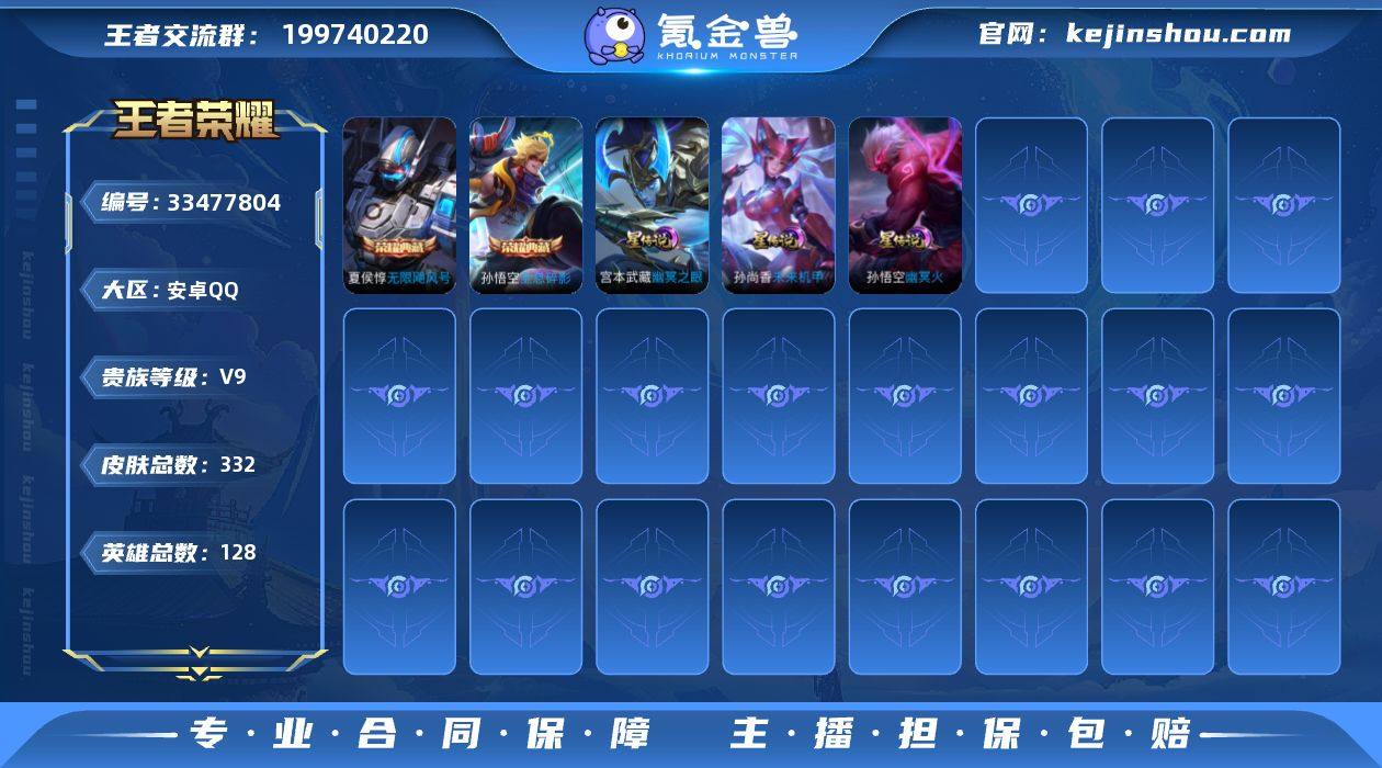 安卓Q-V9-至尊星耀IV段位-128英雄-332皮肤-2典藏皮肤-15传说-91史诗
