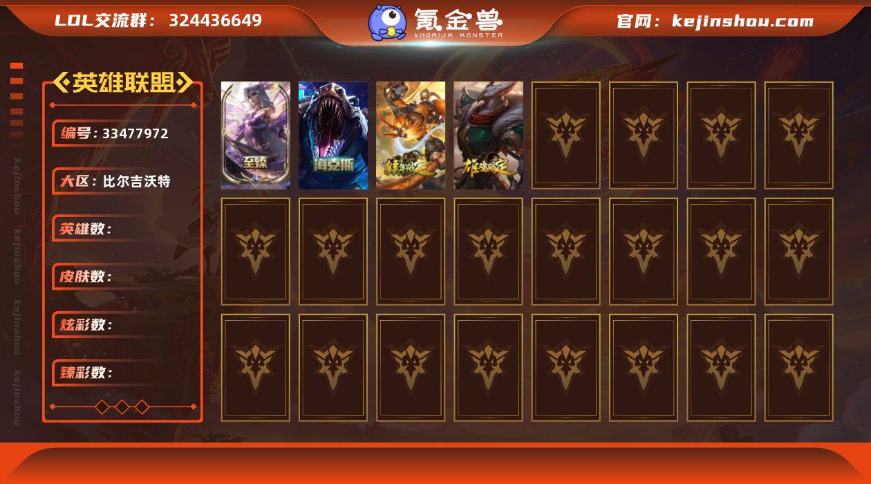 5神话 35限定 29传说 85史诗 344皮肤 38炫彩 172英雄 可二次 可修改实名