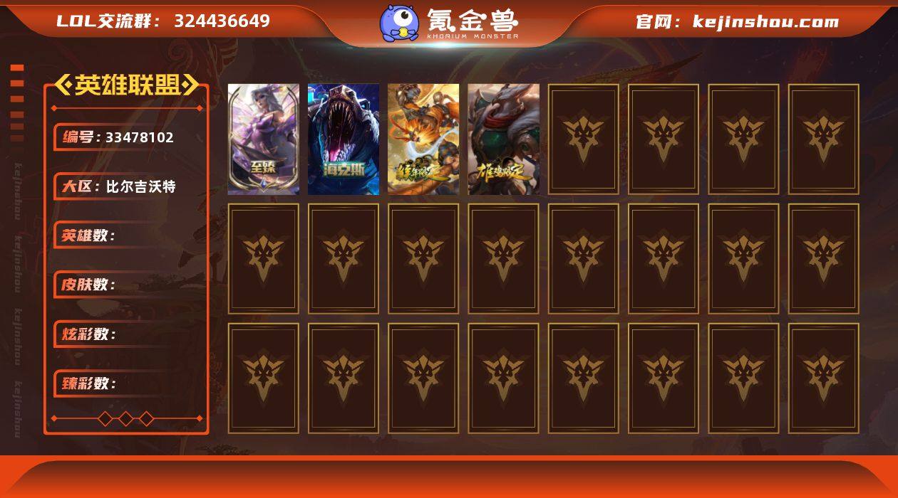 5神话 35限定 29传说 85史诗 344皮肤 38炫彩 172英雄 可二次 可修改实名