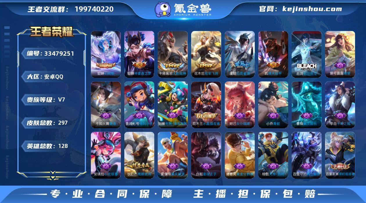 [18715506]V7 1典藏 1珍品传说 8传说 128英雄 297皮肤 可二次 可修改实名 男号 【英雄全皮】大禹全皮 【稀有英雄】大司命,嬴政(始皇帝),韩信(韩跳跳),夏洛特(夏师傅),艾琳,橘右京(橘子),娜可露露(鸟人),不知火舞,赵云,金蝉(唐僧),戈娅 【荣耀水晶】幻阙歌(貂蝉典藏) 【珍品传说】大耳狗之梦 【传说皮】仲夏夜之梦(大飞蛾),末日机甲-孙尚香(绿蚂蚱),云霓雀翎,冠军飞将,久胜战神,绛天战甲(鸡嘴战神),追逃游戏(安琪拉) 【珍宝阁皮】胡桃夹子,蔷薇恋人,女武神 【赛季/战令皮】噬灭天穹(s37),古海寻踪(s33),星界游侠,海盐诗旅(s30),擒涛扼浪(s31),潮玩骑兵,奇幻香踪,探海日志(s32),驭风魔法,玲珑珍味,流音漫舞,顽趣-梦奇,地狱燃心,剑破天穹(s35),天穹祈灯(s34),天穹之誓(s36),暖冬·兔眠,万华元夜(s22),演武夺筹(s23),驱傩正仪(s24),千军破阵(s25),暗影游猎(游乐娃子),神迹守卫-墨子,航海奇遇记,圣弓游侠,真爱魔法,沙漠行僧(s26),金庭之子(s27),大漠名商(s28),云中旅人(s29),超时空战士-钟无艳,落雪兰心 【史诗皮】海之女神,茶境仙,星界战将,蒙犽顽岩魄,蔬乡物语(鲁班七号),光弋星穹,线条小狗-周瑜,九幽镇关,线条小狗-小乔,罗小黑战记-百里玄策,万灵启世,涂山容容,百相守梦-黄忠,石...