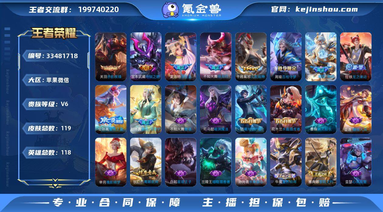 [18742189]V6 1典藏 1珍品传说 7传说 118英雄 119皮肤 可二次 可修改实名 男号 【英雄全皮】蒙恬全皮,蚩奼全皮,影全皮,大禹全皮 【稀有英雄】大司命,嬴政(始皇帝),韩信(韩跳跳),夏洛特(夏师傅),橘右京(橘子),娜可露露(鸟人),不知火舞,赵云,金蝉(唐僧),戈娅 【荣耀水晶】赤影疾锋 【珍品传说】时之奇旅-孙策 【传说皮】神骥·逐星野,地狱之眼,久胜战神,浮生妄 【珍宝阁皮】万物之道 【赛季/战令皮】噬灭天穹(s37),古海寻踪(s33),探海日志(s32),剑破天穹(s35),天穹祈灯(s34),云间偶戏 【史诗皮】海之女神,星界战将,器灵·浮梦炉,瑰影绮梦,糖绘人间,线条小狗-周瑜,九幽镇关,龙之律动,藏狐·褐绒,百相守梦-黄忠,百相守梦-周瑜,蒙恬荣光圣徽,魅语,偶像歌手,末日机甲-吕布,猫狗日记-孙策,节奏热浪,摇滚巨星,水果甜心,星夜王子,德古拉伯爵,暗隐猎兽者,幽灵船长,暗渊魔法,心灵战警,地狱岩魂,水晶猎龙者,曙光守护者,圣诞狂欢,圣诞恋歌,鹰眼统帅,魅力维加斯,黎明之约,无心 【限定皮】愿照·山河定(司空震年限),鸣野蒿,绯月行,蜜橘之夏 【普通皮】铁骨偃魂,谧流熔炉,魅影绮裳,劲辣红锅,雪境奇遇-西施,爆裂喵拳,景韶洛都,街头霸王,浪漫序章,程咬金群星魔术团,玫蓝誓约,苍林狼骑,虚灵犬护,鹤鸣...