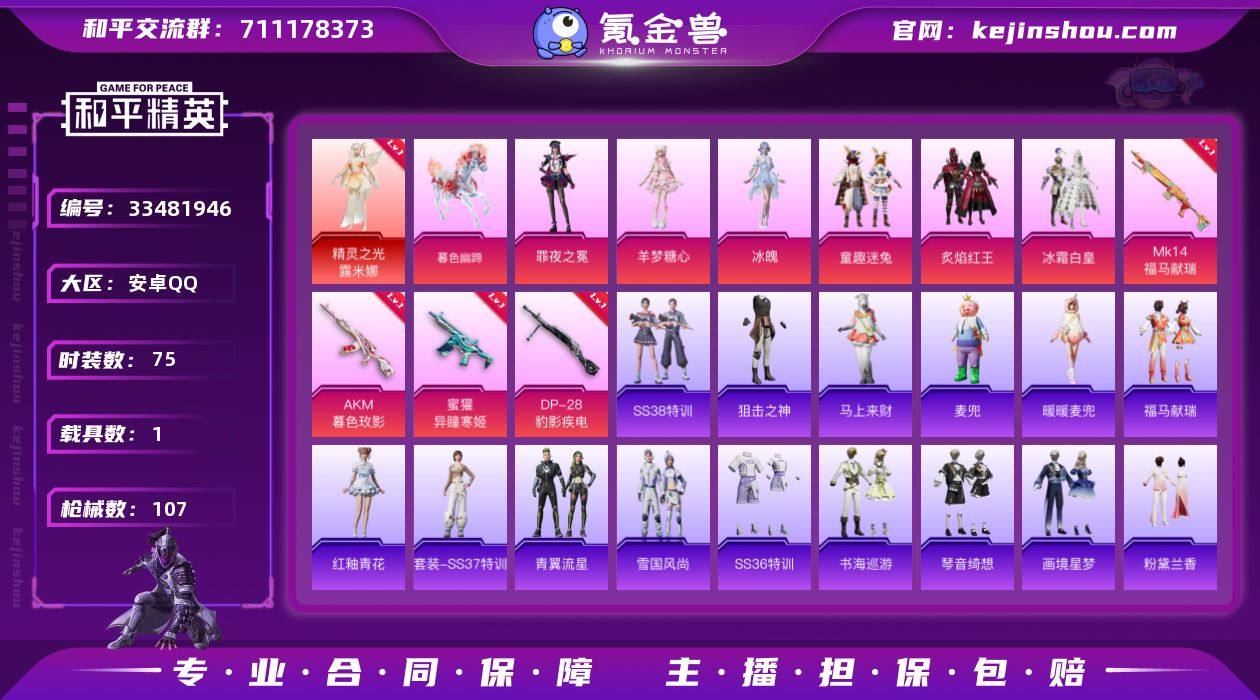 【3级红装红眼罩6粉装4特效枪1载具 秒换绑不用等】 安卓Q区-37136热力值-75套装-107枪皮 【1红装】 精灵之光-露米娜(3级)【1载具】 暮色幽蹄【1稀有】 红眼罩【6粉装】 童趣迷兔 冰霜白皇 罪夜之冕 炙焰红王 角色-冰魄 角色-羊梦糖心【4特效枪】 AKM-暮色玫影(3级) Mk14-福马献瑞(5级) 蜜獾-异瞳寒姬(5级) DP-28-豹影疾电(5级)【136热门】 暗影哥特(红眼罩) 浪漫天命 Mk47-乌木金纹 M249-彩虹符号 MG3-幻世战舞者 鹰眼刺客 M416-蓝色火焰 GROZA-春暖花开 M762-第五大道 长空猛禽 青涩时光 魅力单车 黎明保卫者 漫步者 红色运动 海岛探路者 兔兔白日梦 AA12-G-雨过天青 沙漠之鹰-雨过天青 平底锅-画境星梦 超感刻度 AWM-暮色玫影 M16A4-雨过天青 SPAS-12-福马献瑞 雨过天青 MG-36-薄荷星砂 GROZA-福马献瑞 SS34特训 漫游都市 朱霞炽焰 撬棍-冰晶雪宝 AWM-天降萌叽 福马献瑞 彩虹兔 SCAR-L-冷漠罗丽 凌霄紫焰 破片手榴弹-爆破雪人 ACE32-冰晶雪宝 擎苍青焰 青翼流星 SS33特训 极速光影 绯色魅影 雪绒豹 游乐 粉黛兰香 狂鲨锋刃 SS36特训 大砍刀-像素花束 异域银装 JS9-凌霄紫焰 MG-36-凌霄紫焰 马上来财 ARX-凌霄紫焰 云朵鹅 GROZA-荧海星豚 晶辉守护 P92-凌霄紫焰 撬棍-冷漠罗...