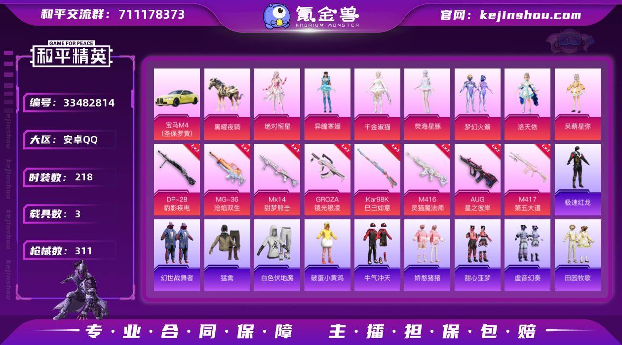 8粉装 10粉枪 3载具 218套装 311枪皮 43热门 黑曜夜骑 宝马M4(圣保罗黄) 梦幻火箭 洛天依 绝对恒星 炫光向阳 迷域探索者 吉莉礼服 星梦畅游 幻羽潜行 虎虎生威吉莉 空投萌叽 萌黄之夏 黄色名流 牛气满满 猛禽 甜蜜告白 破晓战魂 荣耀 天籁歌者 萌趣颜团子 电音精灵 耀粉歌者 潮流炫酷 飞行日记 熠彩粉晶 莱茵河畔 福星高照 神气柴柴 暗夜傀儡 幻彩翩翩 王牌教练 青玉碎影 飞驰魅影 龟仙人 音速流光 果汁能量 明鸳圣池 涂山之恋 冷焰舞者 空岛之星 金戈铁马 狂战萌兔 香榭午后 都市漫游者 惊鸿侠骨 萌趣咩咩 竞技名士 娇憨猪猪 锦衣飞扬 绚紫流光 深蓝色名流 蓝调潮人 元气发射 酒红色名流 战地督导 灼焰舞者 龙的传人 玉兔迎春 快闪甜心 特战装甲 田园牧歌 春光漫游 轻风白浪 湖蓝色名流 蓝色守护者 光之冒险 绯格组合 野性山猫 完美偶像 街头潮人 怒火燎原 蓝彩潮人 绮丽涂鸦 耀眼新星 旭日情侣 缤纷果语 幻世战舞者 人气偶像 金耀舞者 幻影武者 都市魅力 夏日音浪 沙漠兵团 探宝勇士 酷潮明星 呆萌星弥 角色-异瞳寒姬 角色-荧海星豚 角色-千金淑猫 M416-灵猫魔法师(3级) S686-生命誓言 汤姆逊-奇异狩猎者 SKS-乌木金纹 S1897-炫彩节奏 Mini14-耀粉歌者 汤姆逊-炫彩节奏 S18...