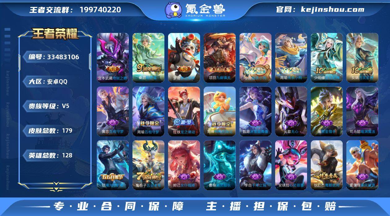 编号A00960 不可二次 v5 179皮肤 3传说 前尘 踏浪烽翎 九幽镇关 鸣野蒿 鹤鸣心笺 地狱之眼 胖达荣荣 百相守梦 幽灵船长 径山谋武