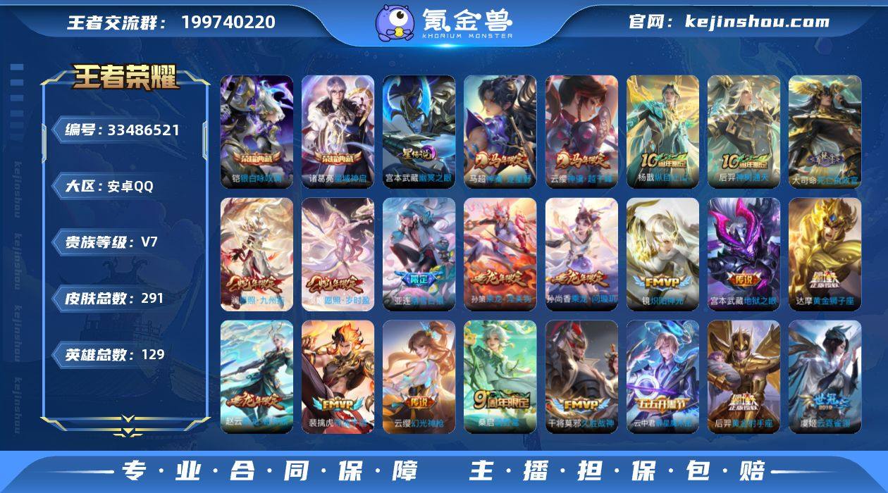 【精选极品号推荐·星域神启·银白咏叹调·神骥越千峰·神骥逐星野·纵目迁山·死亡执政官·愿照九州拓·愿照岁时盈·祥瑞亨通·云中君群星魔术团·落雪白狼·乘龙问璇玑·乘龙淬吴钩·乘龙铭钟鼎·炽阳神光·无二次包过】YXw23886-安卓Q-129英雄-291皮肤-16王者印记-170铭文-贵族积分4w【贵族7】【2典藏·2星传说·22传说·15按键】【因赛季更新游戏段付以上号为准!】 【英雄全皮】:孙权全皮,大司命全皮,敖隐全皮,蒙恬全皮,空空儿全皮,影全皮 【荣耀典藏】:诸葛亮星域神启,铠银白咏叹调 【星元皮肤】:刘备时之思念,宫本武藏幽冥之眼 【传说皮肤】:云缨神骥越千峰,马超神骥逐星野,杨戬纵目迁山,后羿神树通天,大司命死亡执政官,澜愿照九州拓,虞姬愿照岁时盈,云缨幻光神枪,裴擒虎祥瑞亨通,桑启鸣野蒿,云中君群星魔术团,亚连落雪白狼,孙尚香乘龙问璇玑,孙策乘龙淬吴钩,赵云乘龙铭钟鼎,铠绛天战甲,镜炽阳神光,干将莫邪久胜战神,虞姬云霓雀翎,达摩黄金狮子座,后羿黄金射手座,宫本武藏地狱之眼 【限定皮肤】:蔡文姬夏日便利店,虞姬夏日便利店,姜子牙天穹之誓,狄仁杰阴阳师,赵云皇家上将,孙尚香蔷薇恋人,高渐离玩趣恶龙,钟无艳超时空战士,扁鹊奇幻香踪,元歌无...
