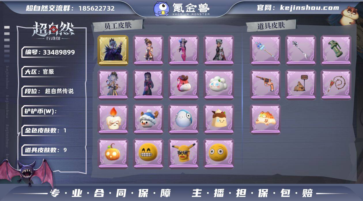 金皮1紫皮5 皮肤:零-渡鸦公爵,阿念-庆宴绮愿,艾伦-黎明猎手,爱丽丝-耀眼的你,爱丽丝-丝缕哀歌,莉莉-除妖小师妹; 道具:电击枪-权杖的许诺,闪光弹-金戈玄铜,铲子-撒拉弗的祷告,喷气背包-乘风溯雪,转轮手枪-新星时代,长鞭-缚誓之锁,铲子-卡皮巴拉小黄豚铲,腰包-红运福虎,急救包-蔷薇物语; 饰品:头饰-嘻嘻头套,头饰-鳄霸天头套,头饰-马上有钱,头饰-惊魂南瓜头套,头饰-蒜了八,头饰-呆滞头套,头饰-面具马头套,头饰-萨卡班甲鱼头套,头饰-饺饺者头套,头饰-樱桃奶油布丁,头饰-烈焰红唇头套,头饰-卑微头套,头饰-烛光纪念,头饰-哈士奇头套,头饰-太空鲨头套,头饰-滑稽头套,头饰-雪墩墩头套,头饰-鱼头怪头套,头饰-像素朋克墨镜,头饰-后室幸存者头套, 挂饰-拂云仙,挂饰-钗头凤,挂饰-桂冠聆诗,挂饰-糖果守卫, 背饰-牛啤背包 ;动作:动作-金城舞,动作-企鹅舞,动作-luvaboy,动作-新年摇,动作-舞台中心,动作-举牌,动作-要糖,动作-抬手,动作-蝴蝶步,动作-拜年; 工牌背景:工牌背景-珊瑚海,工牌背景-甜心的囚笼,工牌背景-永恒之阶,工牌背景-春和景明,工牌背景-复活的肖像,工牌背景-星空下的小羊,工牌背景-粉嫩小海狸;工牌动作:工牌...