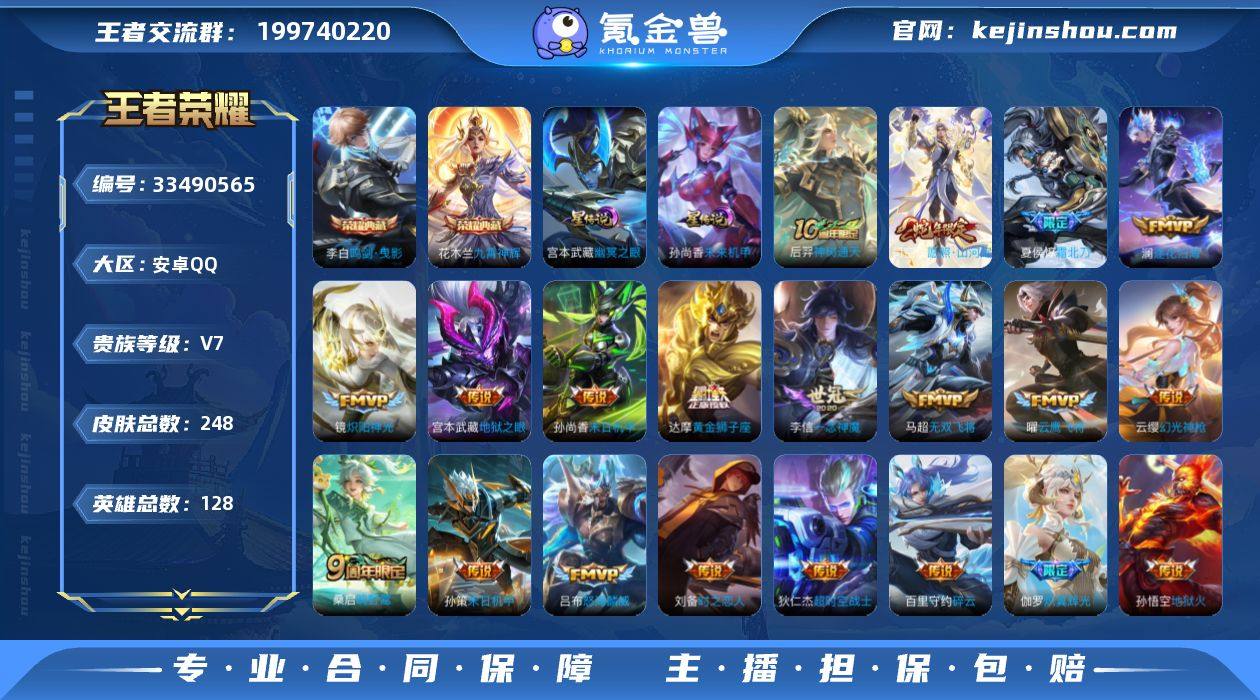 【精品推荐·鸣剑曳影·九霄神辉·震愿照山河定·霜北刀·炽翼辉光·逐花归海·无双飞将·一念神魔·至尊宝·无二次包过】YXw23156-安卓Q-128英雄-248皮肤-7王者印记-190铭文-贵族积分4w【贵族7】【2典藏·2星传说·22传说·13按键】【因赛季更新游戏段付以上号为准!】 【英雄全皮】:孙权全皮,司空震全皮 【荣耀典藏】:李白鸣剑曳影,花木兰九霄神辉 【星元皮肤】:孙尚香未来机甲,宫本武藏幽冥之眼 【传说皮肤】:后羿神树通天,司空震愿照山河定,云缨幻光神枪,桑启鸣野蒿,庄周牧神诗旅,夏侯惇霜北刀,澜逐花归海,伽罗炽翼辉光,吕布怒海麟威,百里守约碎云,马超无双飞将,孙策末日机甲,镜炽阳神光,曜云鹰飞将,李信一念神魔,刘备时之恋人,张良黄金白羊座,达摩黄金狮子座,孙尚香末日机甲,宫本武藏地狱之眼,孙悟空地狱火,狄仁杰超时空战士 【限定皮肤】:夏侯惇霜北刀,暃埋骨钱,蔡文姬夏日便利店,大乔绒语心约,虞姬夏日便利店,姜子牙天穹之誓,杨戬破阵退雄兵,狄仁杰阴阳师,赵云皇家上将,赵云龙胆,赵云百木心枪,高渐离玩趣恶龙,阿轲迷踪丽影,吕布猎兽之王,元歌无心,狄仁杰魔术师,达摩沙漠行僧,项羽海滩派对,老夫子航海奇遇记,韩信飞衡,兰陵王驯魔猎...