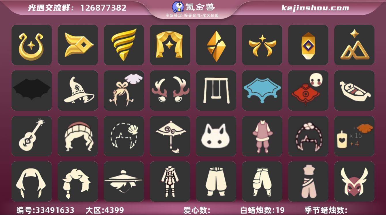 [18776564]安卓官服 手机账号 3珍稀物品 7毕业季 5毕业图 19蜡烛 【珍稀物品】魔法季耳坠(双边耳坠)(魔法耳坠),白枭(帝企鹅发),透明蝶翼斗 【季节已毕业】风行季,潜海季,表演季,破晓季,欧若拉季(欧若拉),追忆季,拾光季 【完成地图】晨岛,雨林,霞谷,墓土(暮土),禁阁 【礼包】新年裤(瑞气服饰),彩虹帽(多彩绒帽),巫师(巫师帽),贝壳(贝壳发饰),兔子(玉兔头饰)(玉兔发饰)(兔子发饰),四叶草(四叶草头饰),鹿角(圣诞鹿角),创始人(创始人斗篷),福娃(福娃礼包)(春之日礼包)(铜钱斗),蝙蝠套(蝙蝠斗篷)(南瓜头),瑞雪(瑞雪斗篷)(暖冬瑞雪),青衫落拓礼包,吉他(音韵吉他)(白吉他),红伞(瑞气纸伞),秋千(情人秋千),小船(情人小船),南瓜(冥龙南瓜) 【裤子】风行毕业裤子(羽袖长袍),蓝绿裤(高领舞服),武士裤,搓澡巾 【面具】黄眉企鹅面具,呼吸面具(潜水面具) 【面饰】黑框眼镜(粗框眼镜),红耳机 【项链】围巾(肩带) 【发型】单侧绑发(单边小辫),留辫蘑菇头,若笠(箬笠) 【头饰】平顶帽,蓝色音乐会(蓝色音乐符),牛仔帽(西部帽),羽毛发饰(多羽发饰) 【斗篷】领主红斗篷(暗红斗篷),冥龙斗篷,燕尾斗篷,遥鲲斗篷(双翼遥鲲斗),瑞雪斗篷,绿芽,海洋斗 【配饰】鲲灯(追忆之书),圆鼓(手拍大鼓),相机(季卡相...