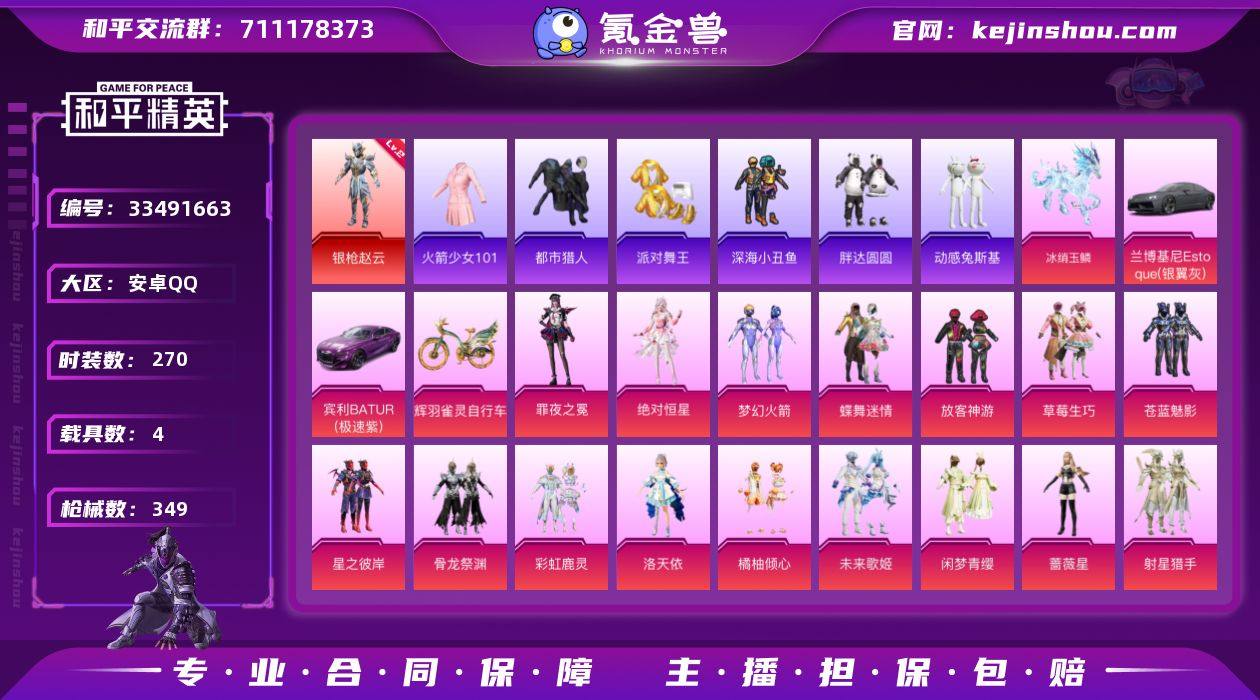 J3298 精品 1红 23粉 16特 4载具 1僚机 2级赵云 老101 派对舞王 暗影哥特 兔兔白日梦 小丑鱼 罪夜之冕 星之彼岸 智耀战神 洛天依 方可神游 新101 满级心之恋语 安卓 手Q-1神装-23粉装-16特效枪-4载具-9粉色飞行器-122806热力值-19王牌印记-270套装-349枪皮 【红色神装等级】:角色-银枪赵云(二级) 【红色角色神装】:角色-银枪赵云 【热门品类】:粉装-梦幻火箭,套装-火箭少女101,套装-都市猎人,套装-派对舞王,套装-深海小丑鱼,套装-小丑鱼,套装-胖达圆圆,套装-动感兔斯基人偶服,角色-2P战斗服款,套装-龟仙人,套装-暗影哥特,套装-粉红小猪,角色-Mark.06,大砍刀-青龙偃月刀 【粉色套装】:角色-绝对恒星,粉装-蝶舞迷情,粉装-梦幻火箭,粉装-放客神游,粉装-草莓生巧,粉装-苍蓝魅影,粉装-星之彼岸,粉装-骨龙祭渊,粉装-彩虹鹿灵,角色-洛天依,粉装-橘柚倾心,粉装-未来歌姬,粉装-闲梦青缨,角色-蔷薇星,粉装-射星猎手,角色-宙之时溯,角色-星云暗核,粉装-憨憨奶龙,角色-初号机 觉醒Ver.,粉装-金丰海韵,角色-智耀战神,角色-绯穹魔姬,角色-罪夜之冕 【粉色枪皮等级】:AKM-绿萝繁花(五级),SCAR-L-锦绣绵绵(五级),M416-心之恋语(七级),AUG-星之彼...