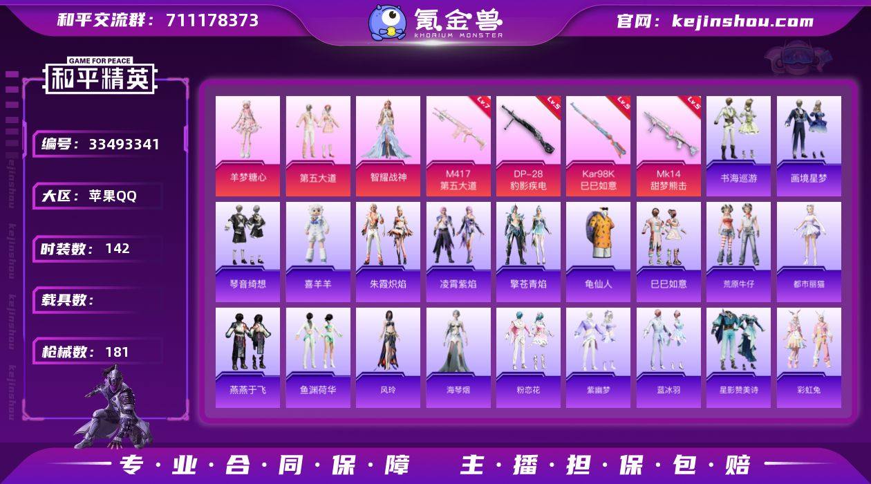 苹果 手Q-3粉装-5特效枪-0载具-1粉色飞行器-52069热力值-10王牌印记-142套装-181枪皮 【热门品类】:套装-龟仙人 【粉色套装】:粉装-第五大道,角色-智耀战神,角色-羊梦糖心 【粉色枪皮等级】:Kar98K-巳巳如意(五级),Mk14-甜梦熊击(五级),Mk14-福马献瑞(二级),M417-第五大道(七级),DP-28-豹影疾电(五级) 【粉色枪皮】:Kar98K-巳巳如意,Mk14-甜梦熊击,Mk14-福马献瑞,M417-第五大道,DP-28-豹影疾电 【粉色飞行器】:炫彩糖果飞行器 【粉色降落伞】:第五大道降落伞,鬼刀降落伞,绯穹魔姬降落伞,喜羊羊与灰太狼降落伞,炫彩糖果降落伞,虹云熊熊降落伞 【稀有套装】:套装-龟仙人,套装-巳巳如意,套装-荒原牛仔,套装-雪国风尚,套装-炫彩糖果,套装-马上有钱,角色-都市丽猫,套装-燕燕于飞,套装-鱼渊荷华,角色-风玲,角色-海琴烟,套装-粉恋花,套装-紫幽梦,套装-蓝冰羽,套装-星影赞美诗,套装-彩虹兔,套装-云朵鹅,套装-雪绒豹,角色-绛羽幽主,套装-朱霞炽焰,套装-凌霄紫焰,套装-擎苍青焰,玩偶服-喜羊羊,套装-书海巡游,套装-画境星梦,套装-琴音绮想,套装-雨过天青,套装-红釉青花,角色-幽雨猫猫 【稀有枪皮】:AKM-彩虹符号,AKM-破晓战魂,AKM-...