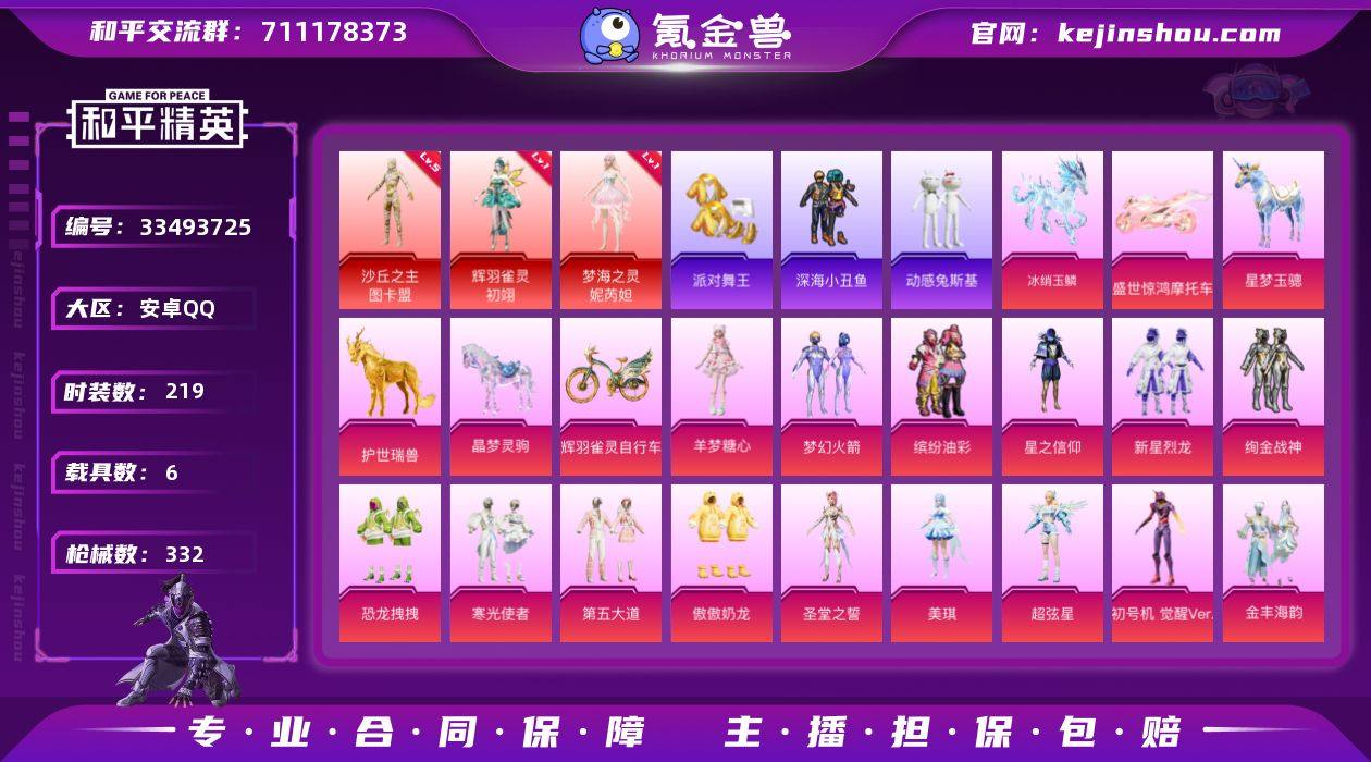 安卓【辉羽雀灵-初翊(一级),梦海之灵-妮芮妲(一级),沙丘之主-图卡盟(五级)/粉装-梦幻火箭/粉装-缤纷油彩/套装-派对舞王/套装-深海小丑鱼/角色-军刀雅典娜/套装-动感兔斯基人偶服/套装-龟仙人/套装-粉红小猪/角色-8号机/角色-Mark.06/盛世惊鸿摩托车/星梦玉骢/护世瑞兽/晶梦灵驹/冰绡玉鳞/辉羽雀灵自行车】 手Q-3神装-21粉装-19特效枪-6载具-21粉色飞行器-124954热力值-15王牌印记-219套装-332枪皮 【红色神装等级】:辉羽雀灵-初翊(一级),梦海之灵-妮芮妲(一级),沙丘之主-图卡盟(五级) 【红色角色神装】:辉羽雀灵-初翊,梦海之灵-妮芮妲,沙丘之主-图卡盟 【热门品类】:粉装-梦幻火箭,粉装-缤纷油彩,套装-派对舞王,套装-深海小丑鱼,角色-军刀雅典娜,套装-动感兔斯基人偶服,套装-龟仙人,套装-粉红小猪,角色-8号机,角色-Mark.06 【粉色套装】:粉装-梦幻火箭,粉装-星之信仰,粉装-缤纷油彩,粉装-新星烈龙,粉装-绚金战神,粉装-恐龙拽拽,粉装-寒光使者,粉装-第五大道,粉装-傲傲奶龙,角色-圣堂之誓,角色-美琪,角色-超弦星,角色-初号机 觉醒Ver.,粉装-金丰海韵,角色-千金淑猫,角色-萨利娅,粉装-星穹咏叹调,粉装-幻彩电音,角色-奇迹舞步 美琪,角色-...
