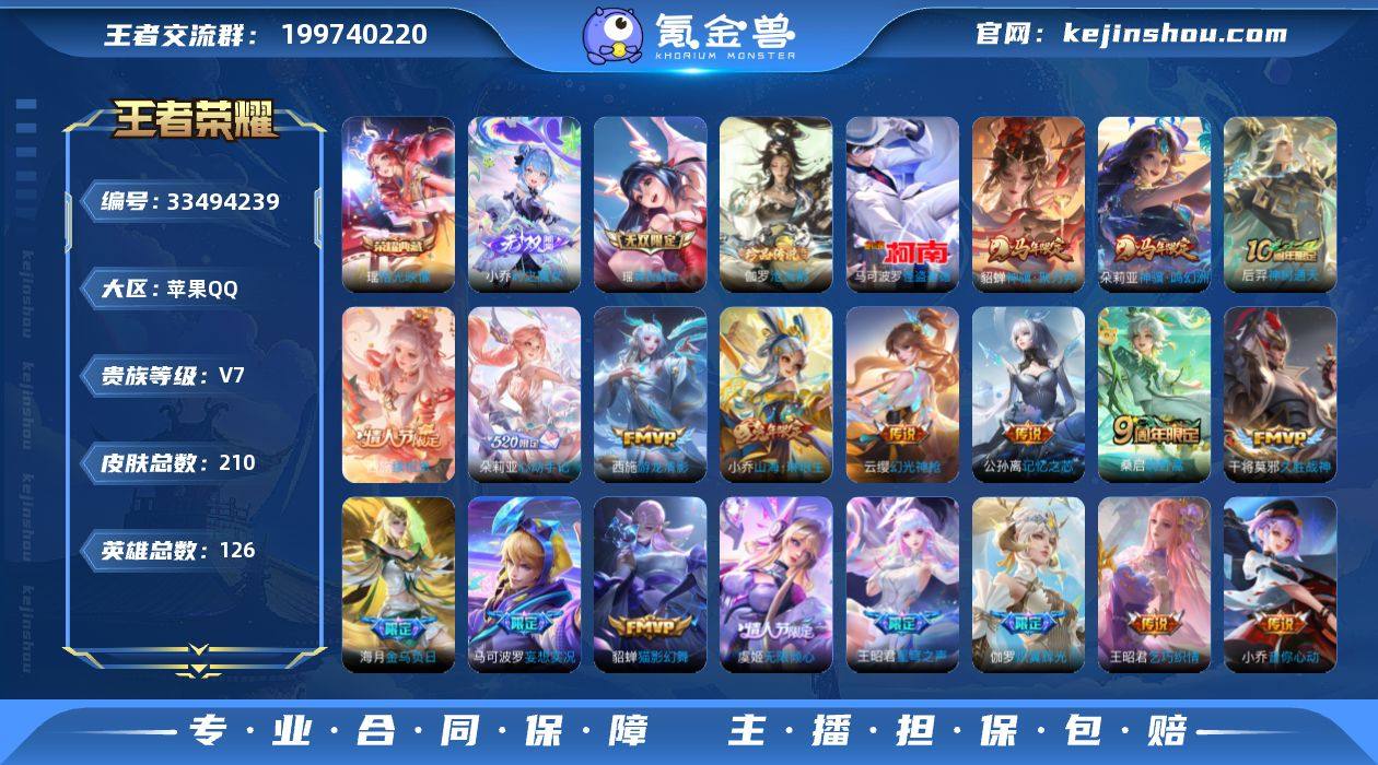 苹果Q-V7-永恒钻石III段位-126英雄-210皮肤-1典藏皮肤-2无双-2珍品传说-23传说-62史诗 【英雄全皮】:朵莉亚全皮,敖隐全皮,少司缘全皮 【荣耀典藏】:瑶拾光映像 【无双皮肤】:小乔时之魔女,瑶真我赫兹 【珍品传说】:伽罗沧流箭,马可波罗怪盗基德 【传说皮肤】:朵莉亚神骥鸣幻洲,貂蝉神骥聚万邦,后羿神树通天,西施续相思,云缨幻光神枪,桑启鸣野蒿,朵莉亚心动手记,海月金乌负日,孙膑小动物乐团,马可波罗妄想实况,公孙离记忆之芯,虞姬无限倾心,伽罗炽翼辉光,小乔山海琳琅生,王昭君星穹之声,蔡文姬花朝如约,王昭君乞巧织情,西施游龙清影,小乔音你心动,李元芳飞鸢探春,虞姬启明星使,貂蝉猫影幻舞,干将莫邪久胜战神 【限定皮肤】:蒙犽顽岩魄,蔡文姬夏日便利店,大乔绒语心约,虞姬夏日便利店,姜子牙天穹之誓,狄仁杰阴阳师,小乔山海琳琅生,赵云皇家上将,妲己时之奇旅,元歌云间偶戏,元歌无心,马可波罗妄想实况,狄仁杰魔术师,达摩星际陆战队,项羽海滩派对,王昭君星穹之声,虞姬启明星使,虞姬无限倾心,蔡文姬奇迹圣诞,公孙离玉兔公主,瑶山海碧波行,伽罗炽翼辉光,艾琳流音漫舞,鬼谷子天穹祈灯,小乔时之魔女,大乔乘龙忆丹青,沈梦溪...