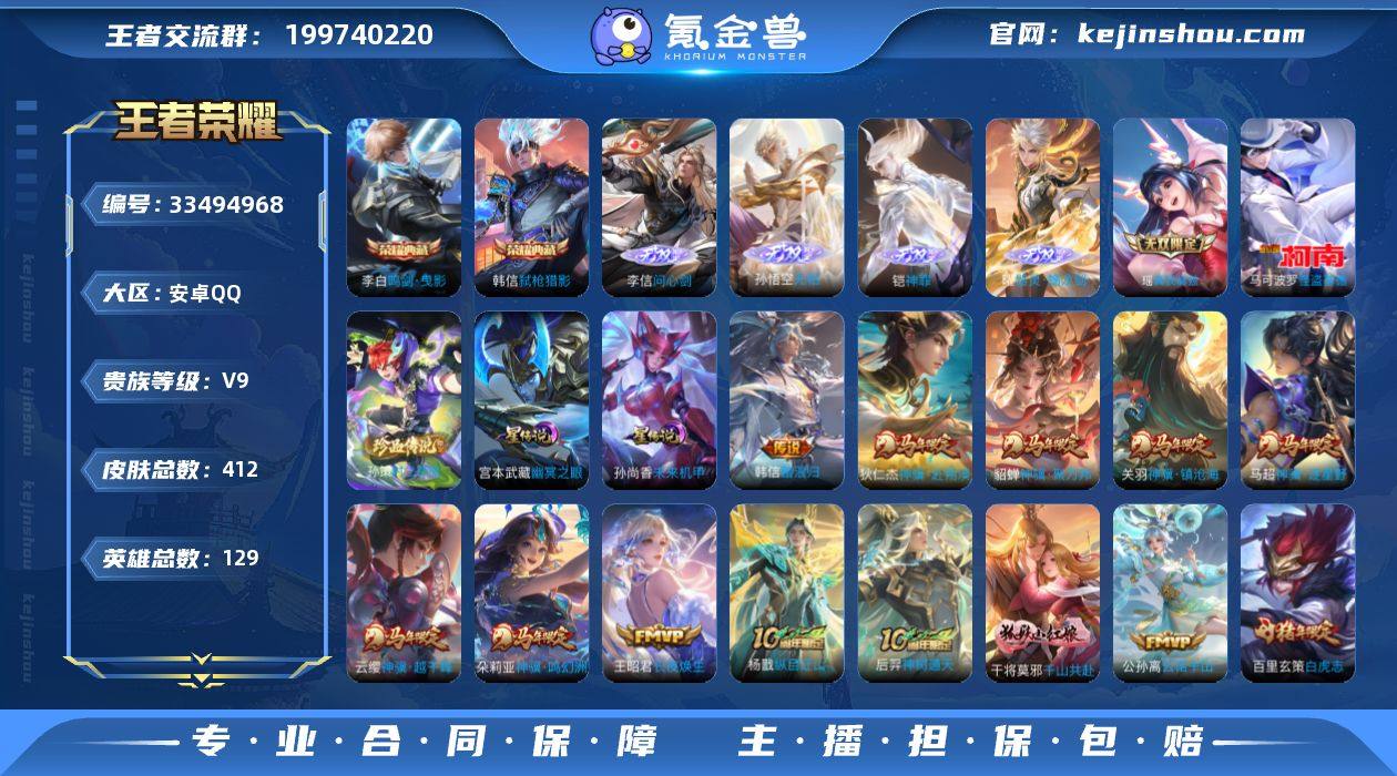 【精品推荐·2典藏·5无双·2珍品·49传说·45段打野·金标万战曜·金标万战澜·金标万战镜·金标万战芈月·金标万战莱西奥·全皮玄策·韩信踏浪归·满马年限定·可二次】YXw24229-安卓Q-129英雄-412皮肤-10王者印记-140铭文-贵族积分12w【贵族9】【2典藏·5无双·2珍品·3星传说·49传说·1天幕·20按键】【因赛季更新游戏段付以上号为准!】 【英雄全皮】:孙权全皮,百里玄策全皮,敖隐全皮,蒙恬全皮,夏洛特全皮,空空儿全皮,影全皮,海诺全皮 【荣耀典藏】:李白鸣剑曳影,韩信弑枪猎影 【无双皮肤】:李信问心剑,孙悟空无相,铠神罪,曜器灵螭龙剑,瑶真我赫兹 【珍品传说】:孙策时之奇旅,马可波罗怪盗基德 【星元皮肤】:刘备时之思念,孙尚香未来机甲,宫本武藏幽冥之眼 【天幕】:墨染江湖天幕 【传说皮肤】:韩信踏浪归,云缨神骥越千峰,关羽神骥镇沧海,朵莉亚神骥鸣幻洲,狄仁杰神骥赴朔漠,貂蝉神骥聚万邦,马超神骥逐星野,王昭君长夜焕生,杨戬纵目迁山,后羿神树通天,干将莫邪千山共赴,公孙离云诺千山,司空震愿照山河定,女娲愿照千秋盛,妲己愿照众生和,澜愿照九州拓,蔡文姬愿照福禄聚,虞姬愿照岁时盈,云缨幻光神枪,裴擒虎祥瑞亨通,嬴政玄雷天君,桑启鸣野蒿,赵云...