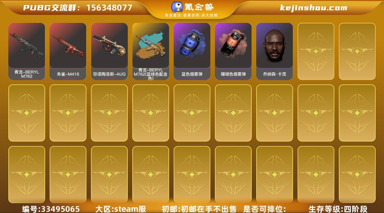 CC16176/可排位/2段/359级/7张图纸/烟雾弹/小丑男/8级霓虹AUG/1级青龙/1级小兔MK12/小兔MK12异色/金面/黑鬼/白熊