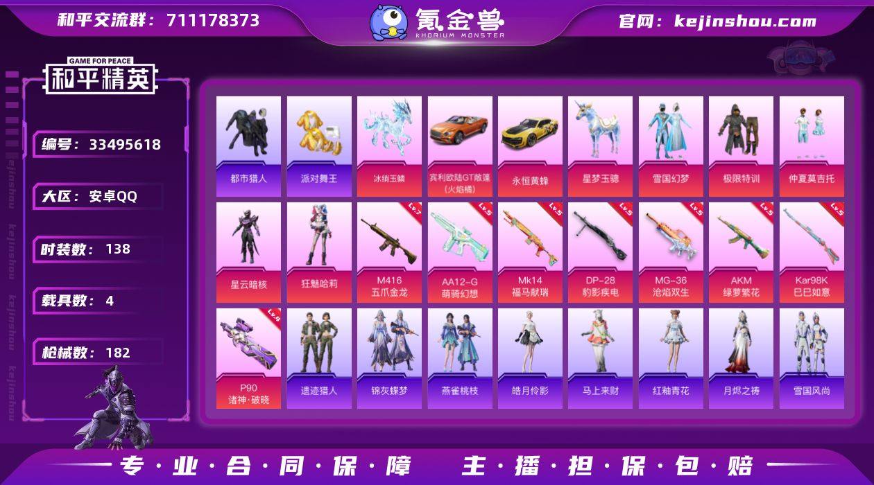 【店主推荐捡漏号/无敌战神框/雪国幻梦】安卓 手Q-无敌战神框-5粉装-8特效枪-4载具-3粉色飞行器-58095热力值-10王牌印记-138套装-182枪皮【热门品类】:粉装-雪国幻梦,套装-浪漫天命,套装-都市猎人,套装-派对舞王,套装-小丑鱼,套装-暗夜之虎,套装-暗影哥特,大砍刀-青龙偃月刀【粉色套装】:粉装-极限特训,粉装-雪国幻梦,粉装-仲夏莫吉托,角色-星云暗核,角色-狂魅哈莉【粉色枪皮等级】:AKM-绿萝繁花(五级),M416-五爪金龙(七级),P90-诸神·破晓(四级),Kar98K-巳巳如意(五级),Mk14-福马献瑞(五级),AA12-G-萌骑幻想(五级),DP-28-豹影疾电(五级),MG-36-沧焰双生(五级)【粉色载具】:宾利欧陆GT敞篷(火焰橘),永恒黄蜂,星梦玉骢,冰绡玉鳞【粉色枪皮】:AKM-绿萝繁花,M416-五爪金龙,P90-诸神·破晓,Kar98K-巳巳如意,Mk14-福马献瑞,AA12-G-萌骑幻想,DP-28-豹影疾电,MG-36-沧焰双生