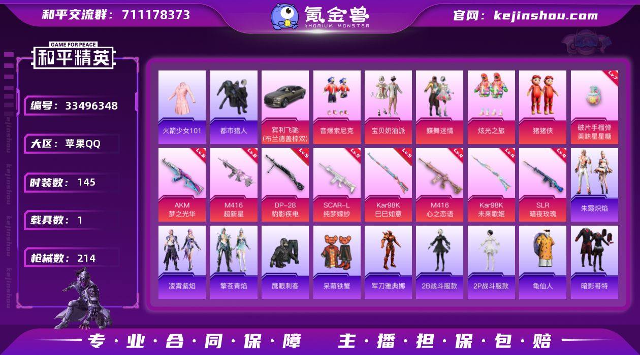 苹果【素材号/15王牌印记/M416-超新星(六级)/火箭少女101/都市猎人/暗影哥特/萌熊伴侣背包/6粉装-9特效枪-1载具-4粉色飞行器】 手Q--70502热力值-15王牌印记-145套装-214枪皮 【热门品类】:粉装-音爆索尼克,套装-火箭少女101,套装-都市猎人,角色-军刀雅典娜,角色-2B战斗服款,角色-2P战斗服款,套装-龟仙人,套装-暗影哥特,套装-粉红小猪 【粉色套装】:粉装-宝贝奶油派,粉装-蝶舞迷情,粉装-音爆索尼克,粉装-炫光之旅,玩偶服-猪猪侠,角色-鸢尾珑雾 【粉色枪皮等级】:AKM-梦之光华(六级),SCAR-L-纯梦嫁纱(五级),M416-心之恋语(四级),M416-超新星(六级),Kar98K-未来歌姬(四级),Kar98K-巳巳如意(五级),SLR-暗夜玫瑰(四级),DP-28-豹影疾电(五级),破片手榴弹-美味星星糖(七级) 【粉色载具】:宾利飞驰(布罗德盖棕双色) 【粉色枪皮】:AKM-梦之光华,SCAR-L-纯梦嫁纱,M416-心之恋语,M416-超新星,Kar98K-未来歌姬,Kar98K-巳巳如意,SLR-暗夜玫瑰,DP-28-豹影疾电,破片手榴弹-美味星星糖 【粉色飞行器】:太空嘟嘟飞行器,霓虹漫游飞行器,冰狼掠影飞行器,纱华羽翼飞行器 【粉色降落伞】:幻影战神降落伞,潮汐统领降落伞,激战未来降落伞,筑梦精灵降落...