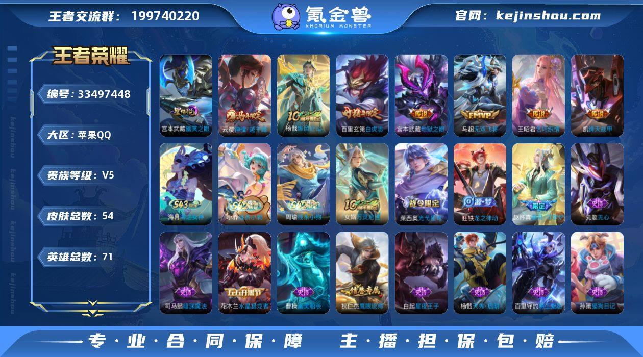 巅峰对抗号百星印记2王者印记5金标万战曹操万战蒙恬万战杨戬铭文150级 苹果Q-V5-永恒钻石I段位-71英雄-54皮肤-7传说-20史诗 【英雄全皮】:孙权全皮,影全皮 【传说皮肤】:云缨神骥越千峰,杨戬纵目迁山,马超无双飞将,王昭君乞巧织情,铠绛天战甲,百里玄策白虎志,宫本武藏地狱之眼 【限定皮肤】:狄仁杰阴阳师,赵云皇家上将,元歌无心,狄仁杰魔术师,项羽海滩派对,哪吒逐梦之翼,百里玄策白虎志 【年限皮肤】:百里玄策白虎志 【赛季限定】:亚瑟荣光之誓 【战令限定】:莱西奥光弋星穹,明世隐往忆晖光,周瑜线条小狗,小乔线条小狗 【史诗皮肤】:海月海之女神,周瑜线条小狗,小乔线条小狗,女娲万灵启世,莱西奥光弋星穹,狂铁龙之律动,赵怀真器灵浮梦炉,元歌无心,司马懿暗渊魔法,杨戬天秀启明,狄仁杰鹰眼统帅,孙策猫狗日记,白起星夜王子,哪吒逐梦之翼,百里守约特工魅影,雅典娜冰冠公主,花木兰水晶猎龙者,张飞乱世虎臣,曹操幽灵船长,妲己魅力维加斯,狄仁杰魔术师,赵云皇家上将 【其他皮肤】:影百相守梦,蚩奼极光幻客,曹操逐霄之志,艾琳鹤鸣心笺,孙权径山谋武,明世隐往忆晖光,亚瑟荣光之誓,影魅影绮裳,姬小满零食大作战,狄仁杰阴阳师,...
