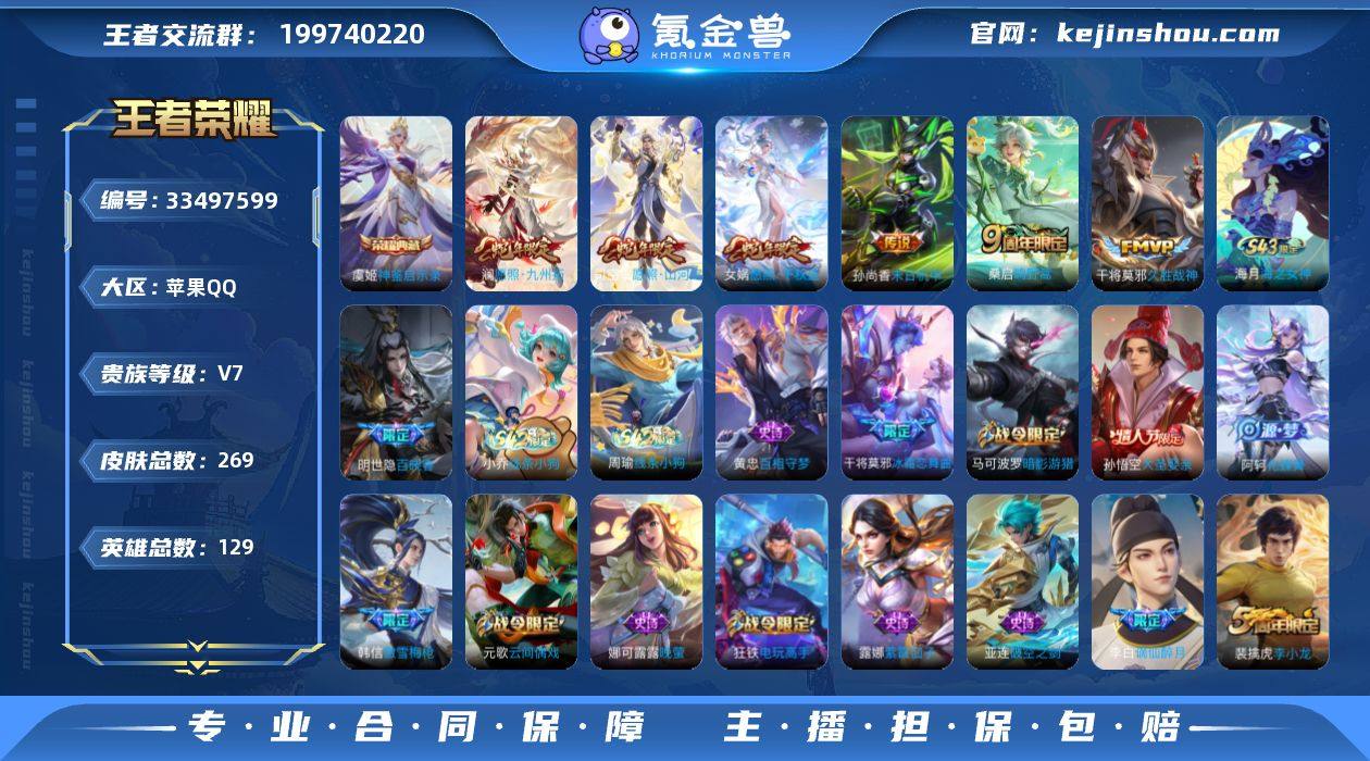 苹果Q-V7-永恒钻石V段位-129英雄-269皮肤-1典藏皮肤-6传说-67史诗 【英雄全皮】:影全皮 【荣耀典藏】:虞姬神鉴启示录 【传说皮肤】:司空震愿照山河定,女娲愿照千秋盛,澜愿照九州拓,桑启鸣野蒿,干将莫邪久胜战神,孙尚香末日机甲 【限定皮肤】:蔡文姬夏日便利店,虞姬夏日便利店,姜子牙天穹之誓,李白谪仙醉月,狄仁杰阴阳师,赵云皇家上将,孙尚香蔷薇恋人,高渐离死亡摇滚,钟无艳超时空战士,芈月幻夜卜梦,周瑜赤莲之焰,元歌云间偶戏,甄姬落雪兰心,马可波罗暗影游猎,狄仁杰魔术师,狄仁杰万华元夜,达摩星际陆战队,达摩沙漠行僧,项羽海滩派对,老夫子醍醐杖,老夫子航海奇遇记,程咬金演武夺筹,韩信傲雪梅枪,王昭君午后时光,兰陵王金庭之子,亚瑟潮玩骑士王,孙悟空大圣娶亲,后羿圣弓游侠,李元芳云中旅人,钟馗驱傩正仪,干将莫邪冰霜恋舞曲,干将莫邪真爱魔法,雅典娜黎明之约,太乙真人华丽摇滚,鬼谷子原初探秘者,鬼谷子五谷丰年,黄忠火炮绅士,苏烈千军破阵,百里玄策原初追逐者,弈星混沌棋,梦奇顽趣,沈梦溪大漠名商,明世隐疑决卦,裴擒虎李小龙,裴擒虎擒涛扼浪,狂铁电玩高手,米莱狄胡桃异想国,云中君纤云弄巧,嫦娥拒霜思,嫦娥暖冬兔...